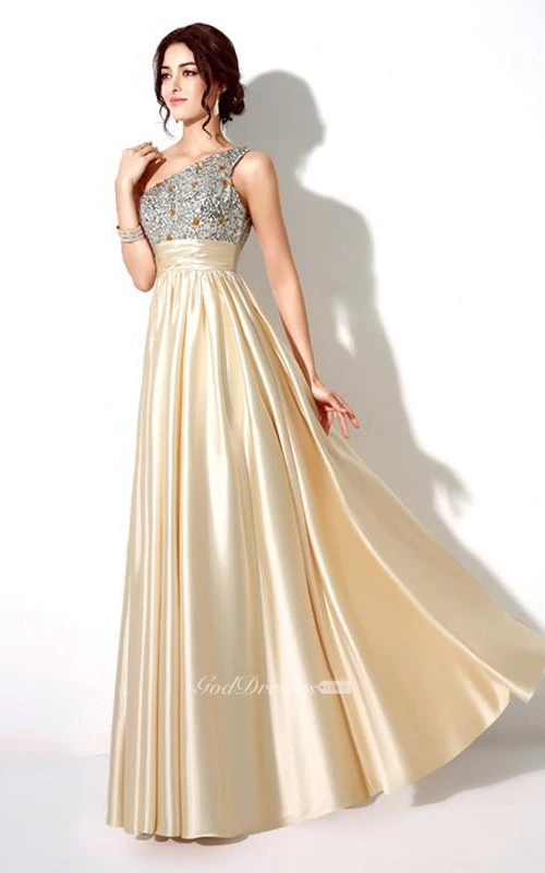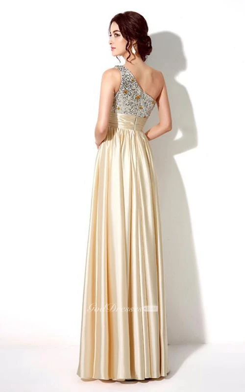 Stylish Beaded Sequins One-Shoulder Long Prom Dress