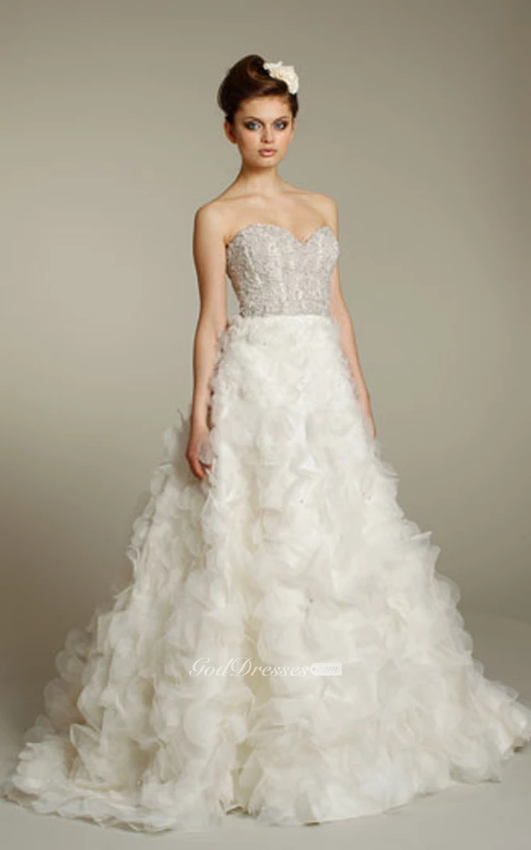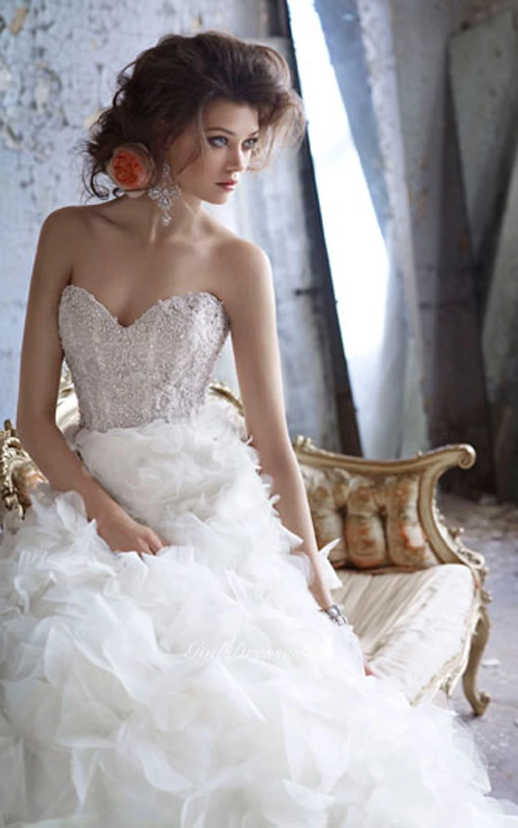 Stylish Organza Ruffle Dress With Beaded Bodice