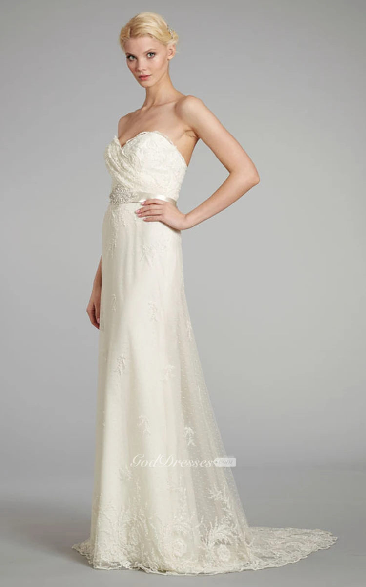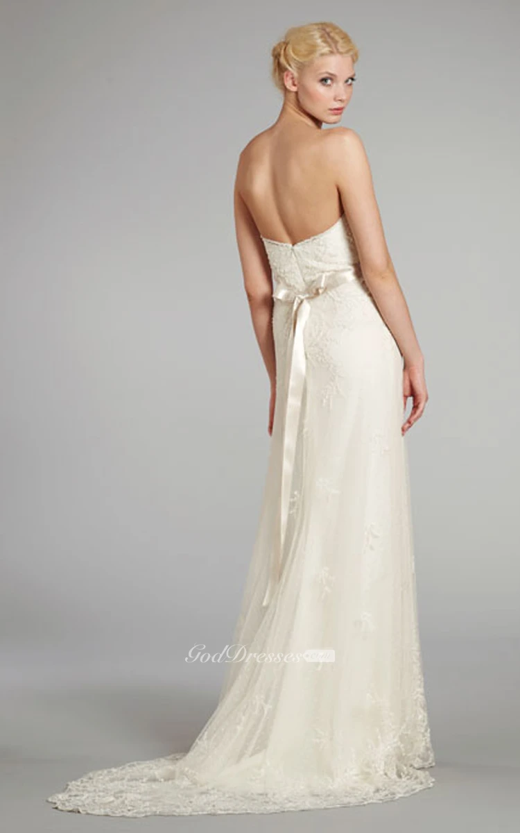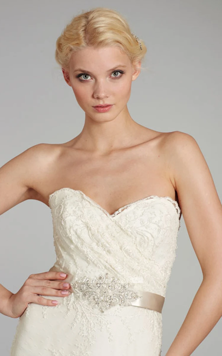 The pretty satin ribbon at the fact and the sweetheart neckline and absolutely gorgeous choice. I'm completely flattered. Thank you.