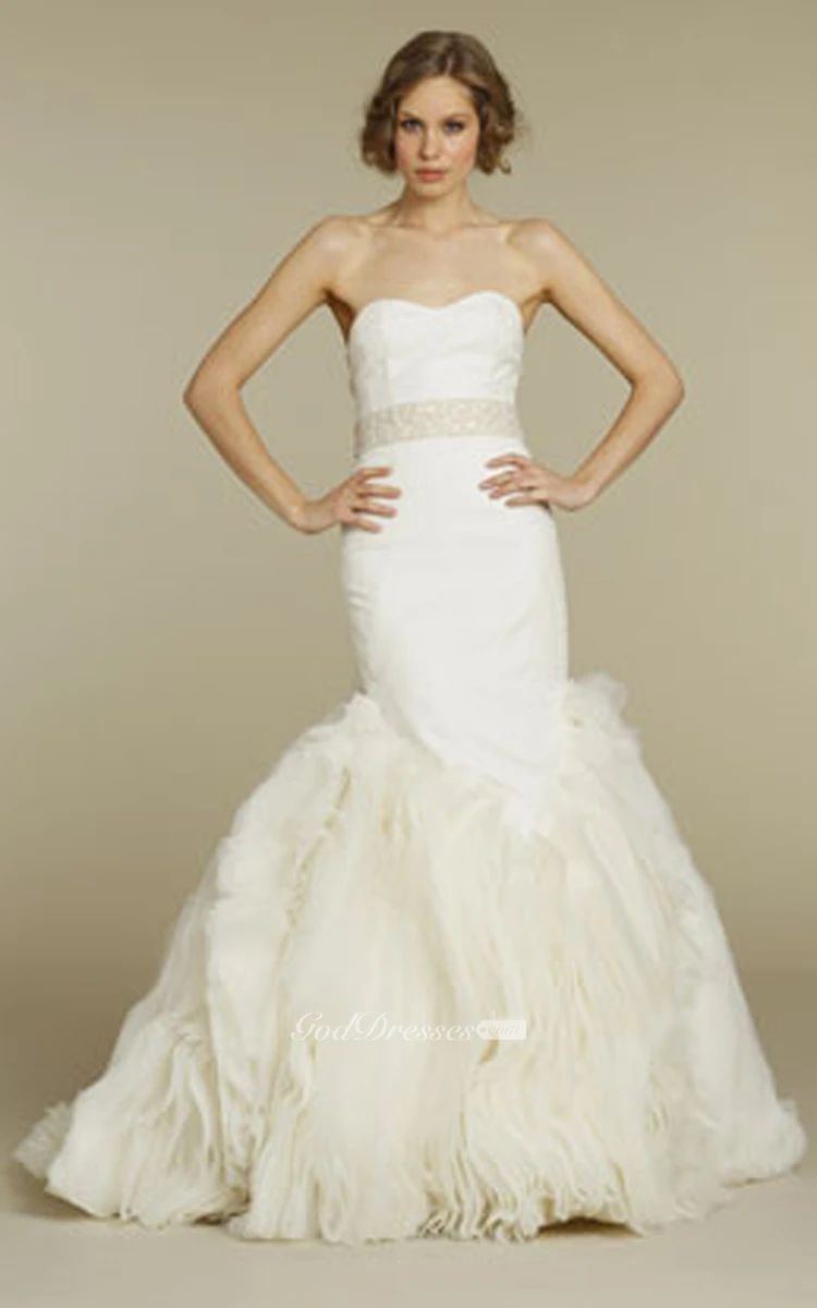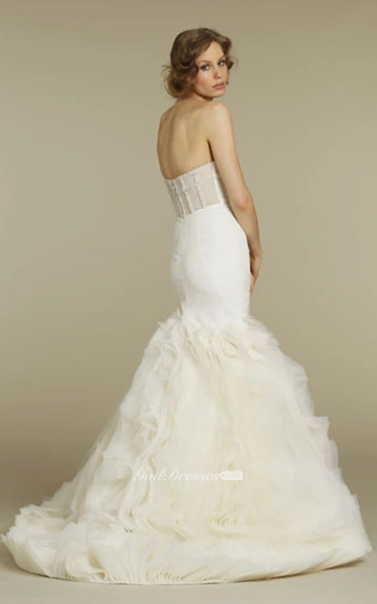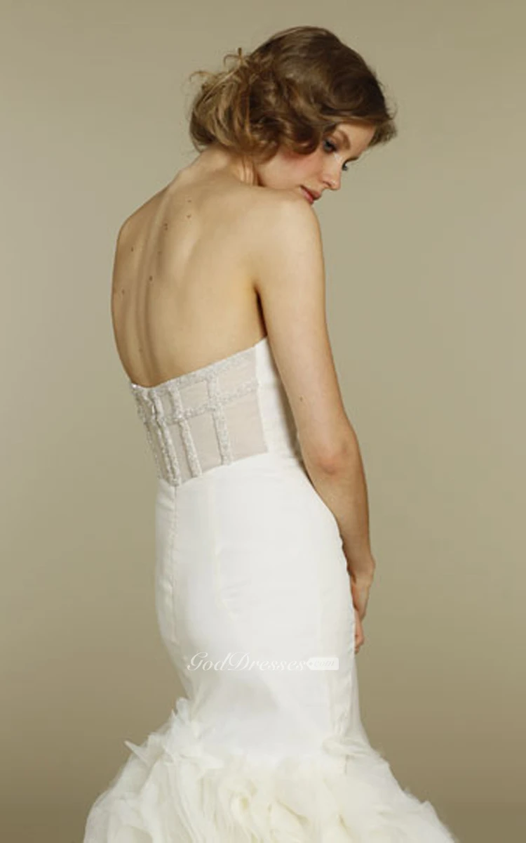 Stylish Strapless Fit and Flare Organza Dress With Sheer Corset Back