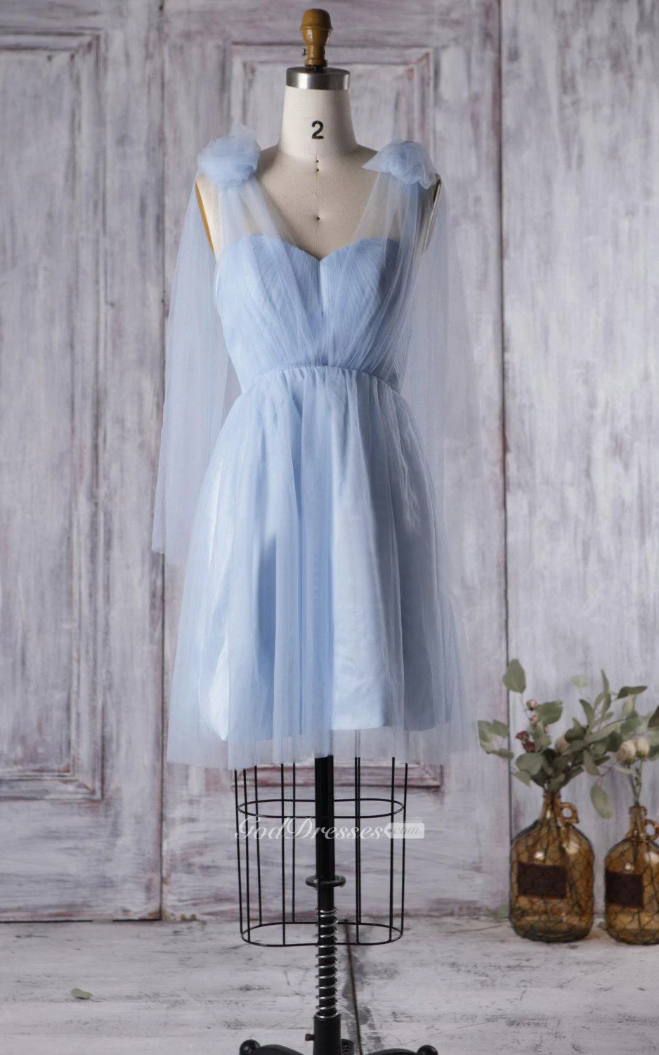 Sweet A-line Tulle Knee Length Dress With Straps and Sash