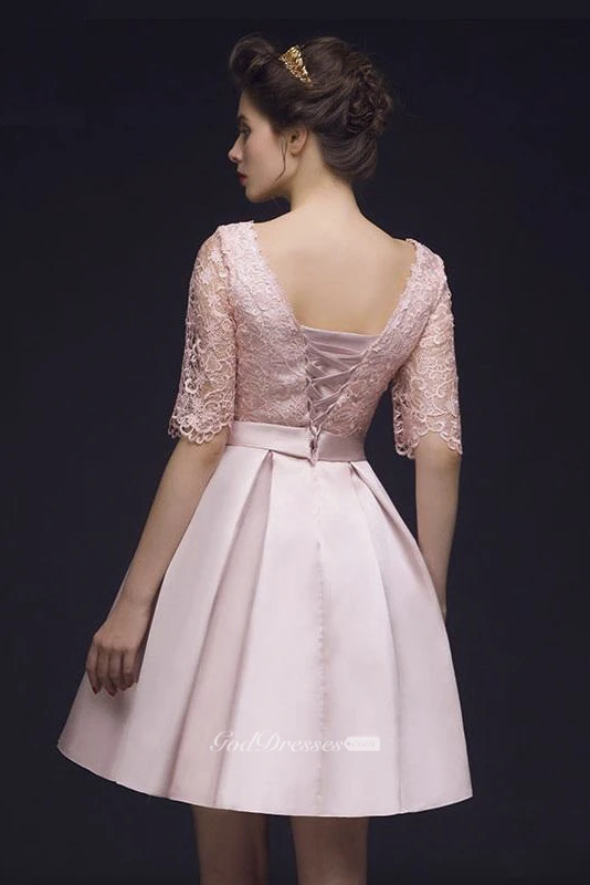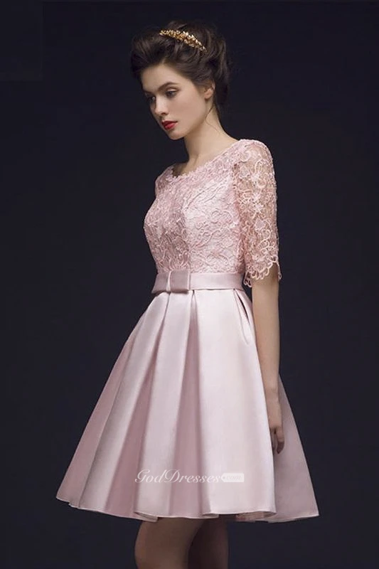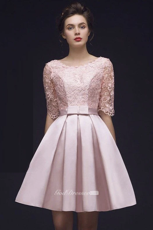 Sweet Lace Corset Back Knee Length Dress With Bow And Half Sleeve