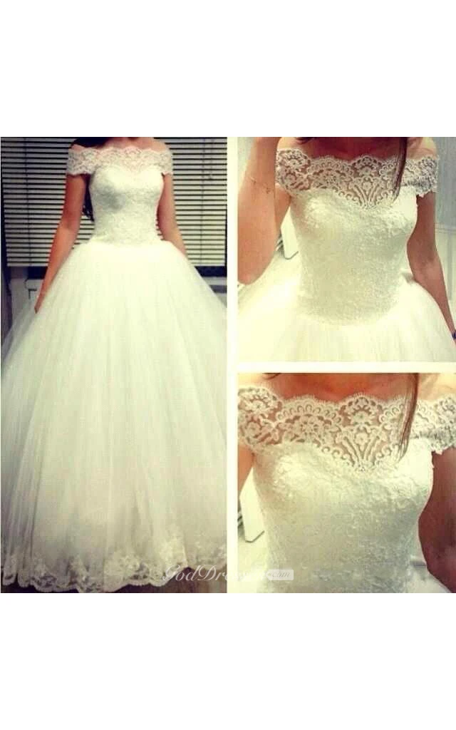 Sweet Scalloped Neck Off-shoulder Tulle Ball Gown With Lace