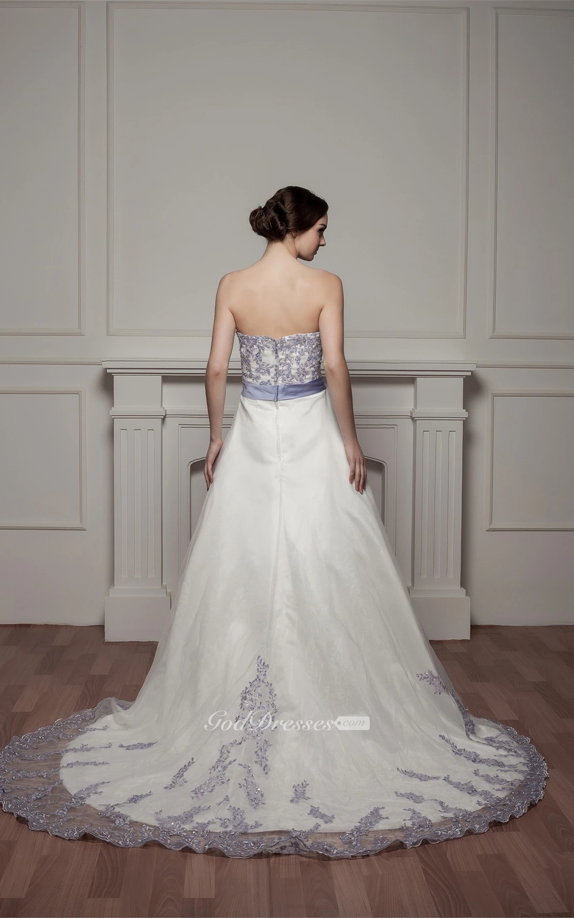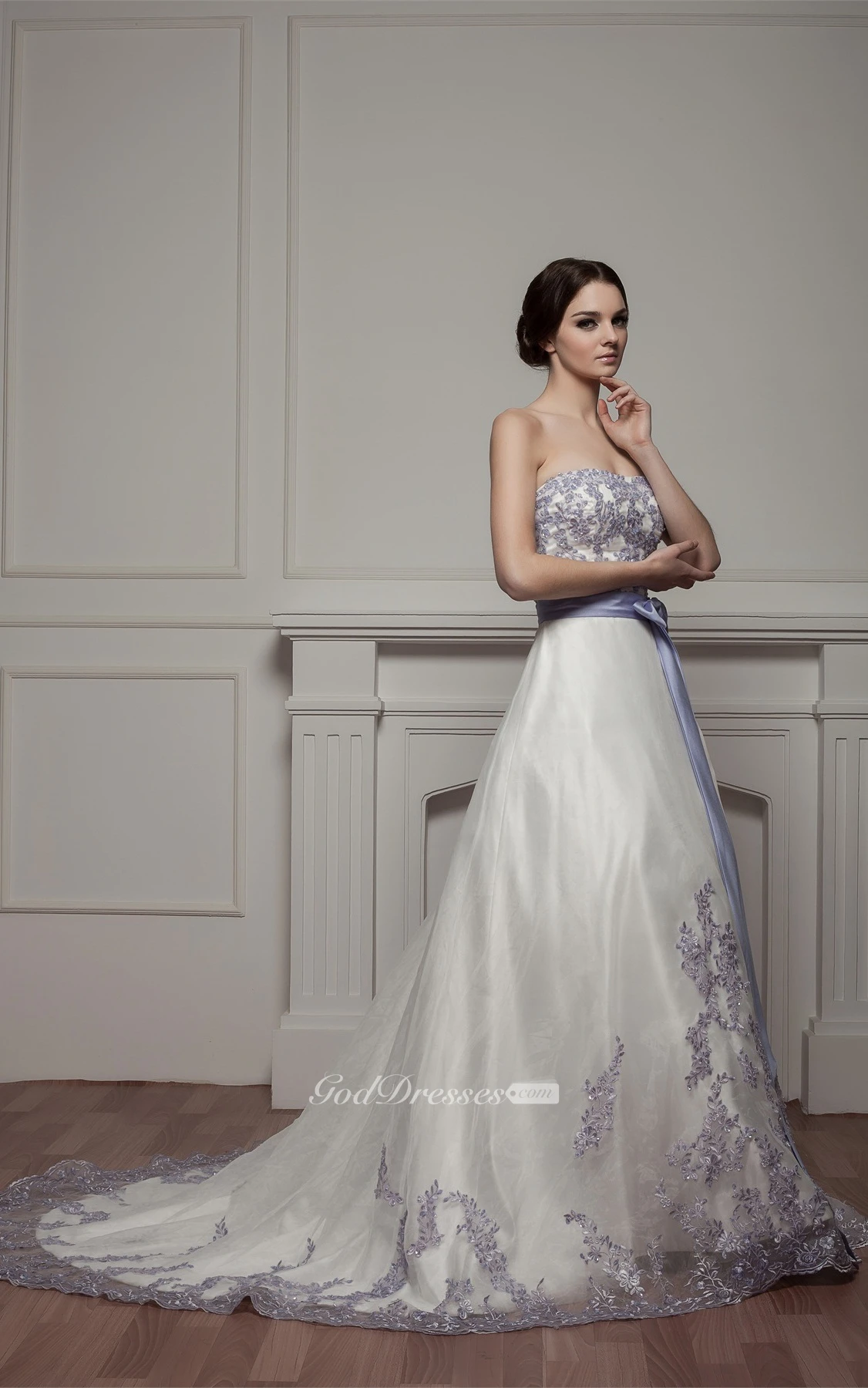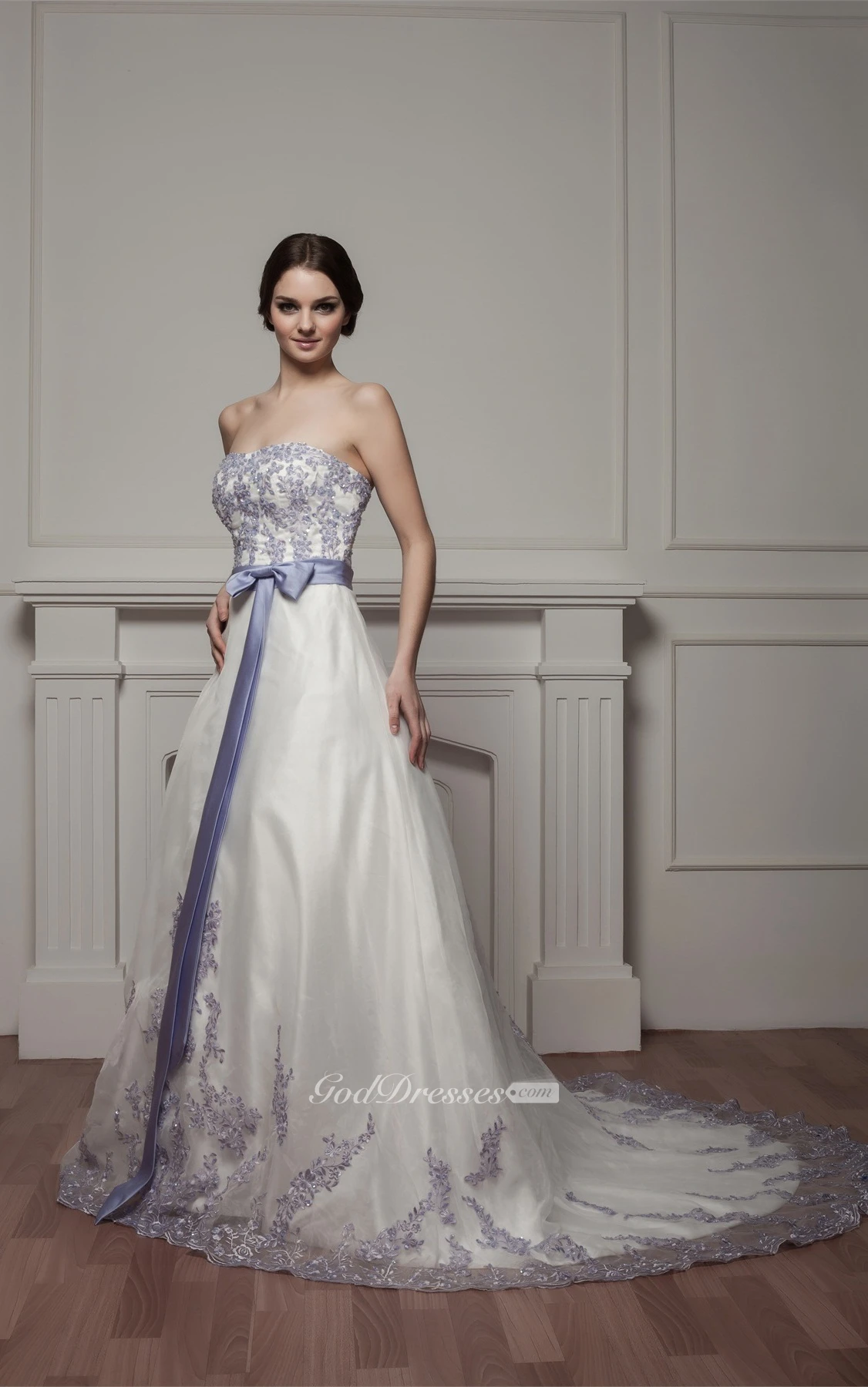 Sweetheart A-Line Appliqued Court Train and Gown With Ribbon