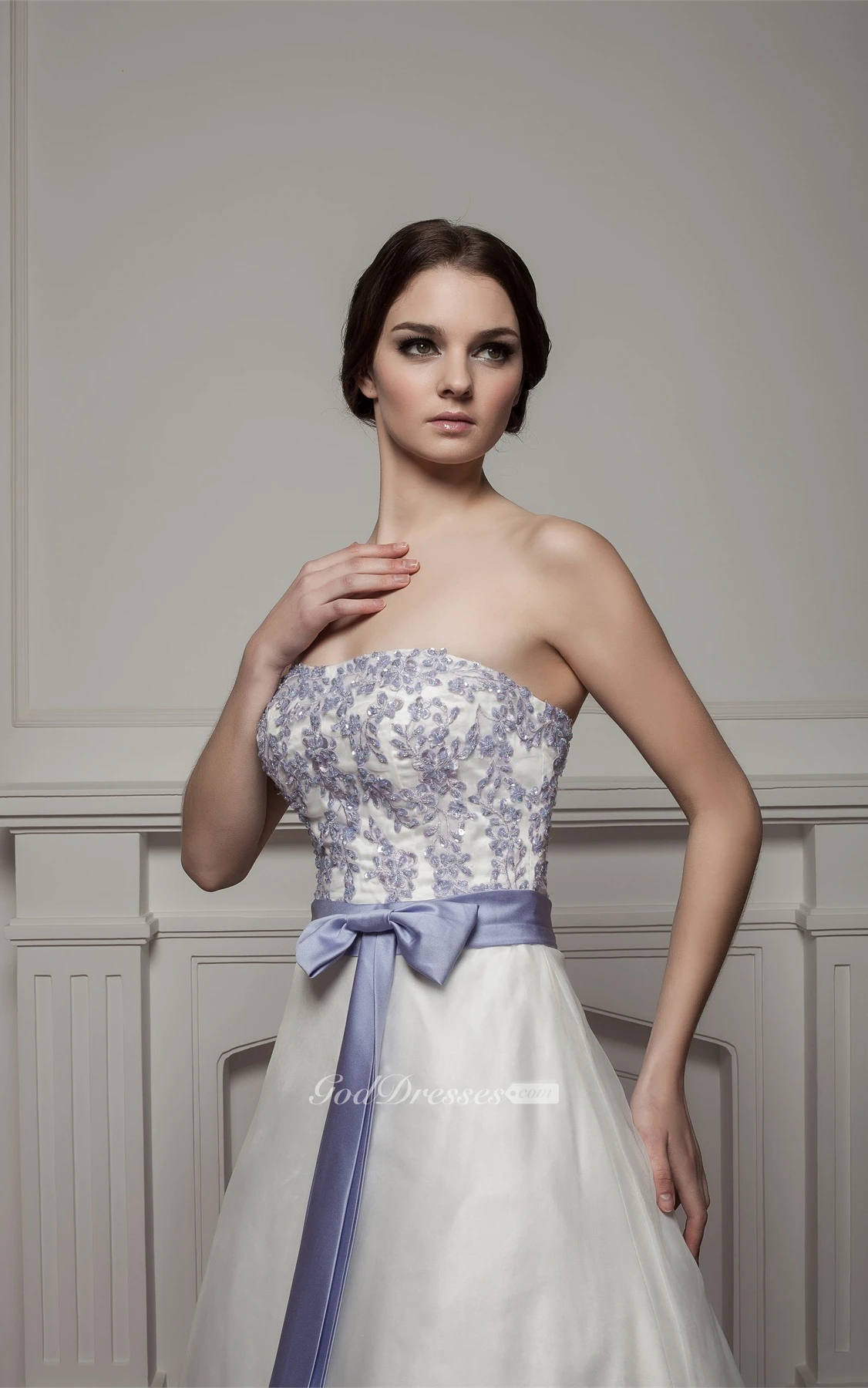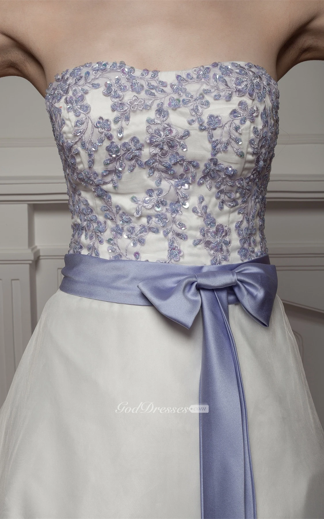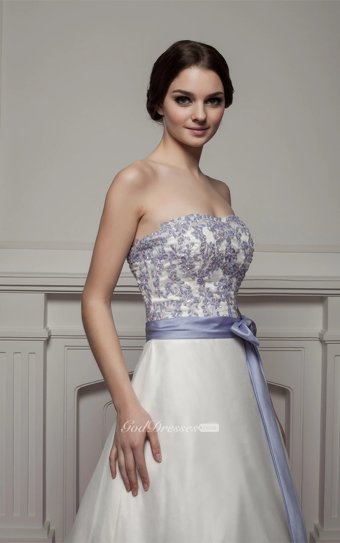 Sweetheart A-Line Appliqued Court Train and Gown With Ribbon