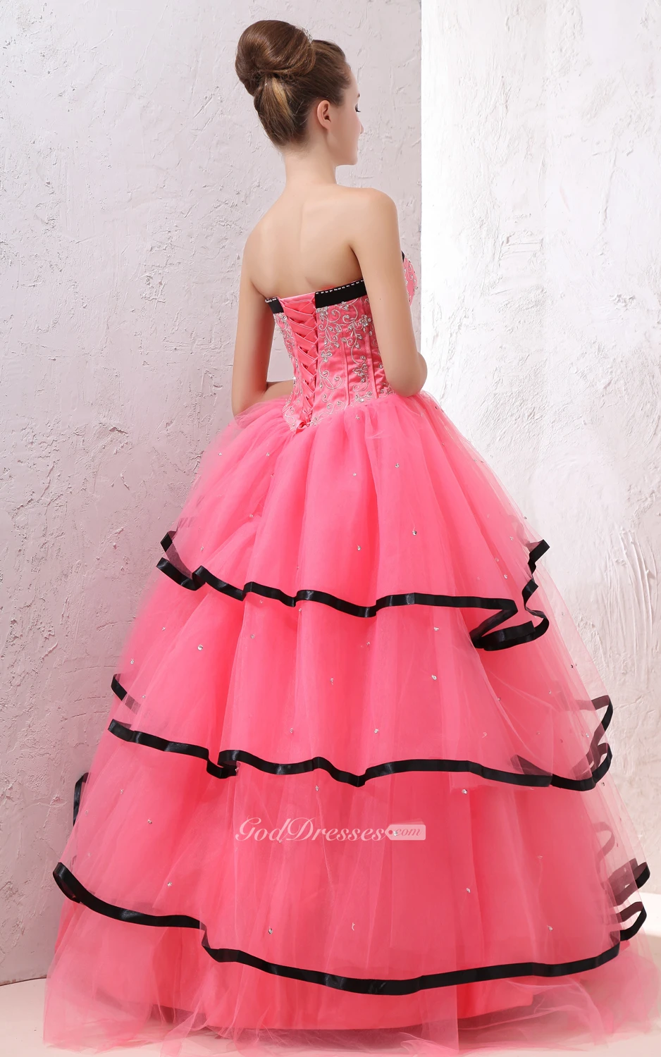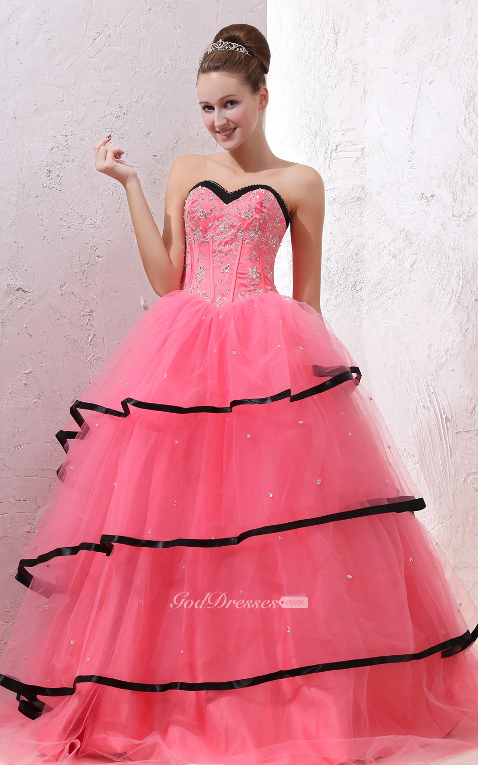 Sweetheart A-Line Ball Gown With Beaded Bodice and Black Hem