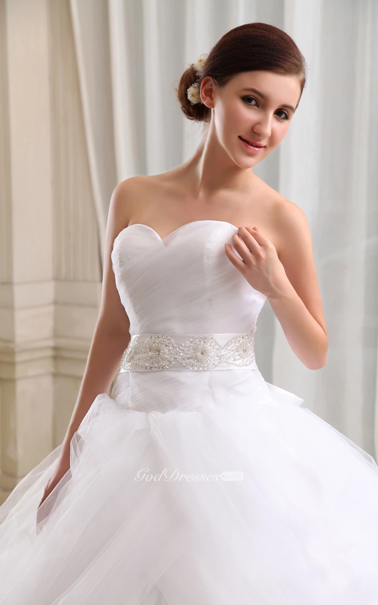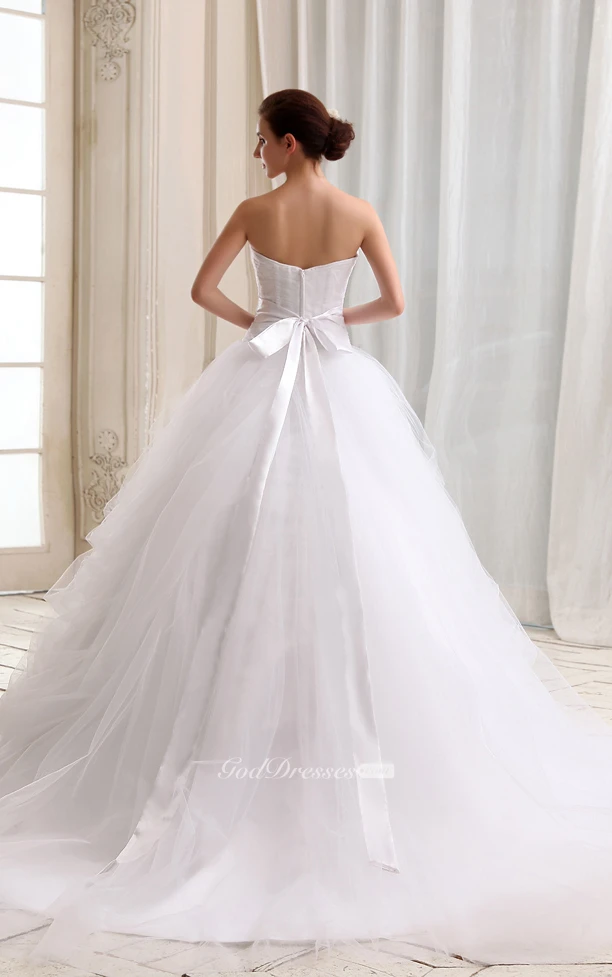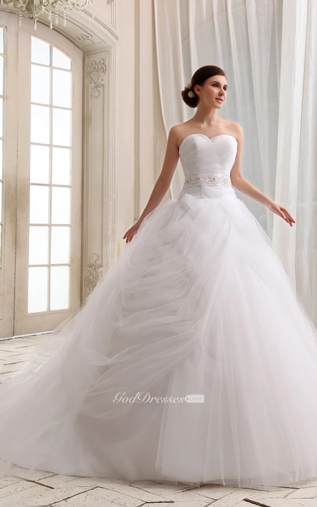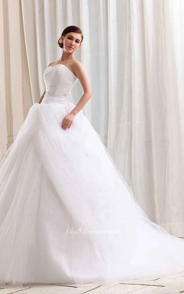Sweetheart A-Line Ball Gown With Tulle Overlay and Court Train