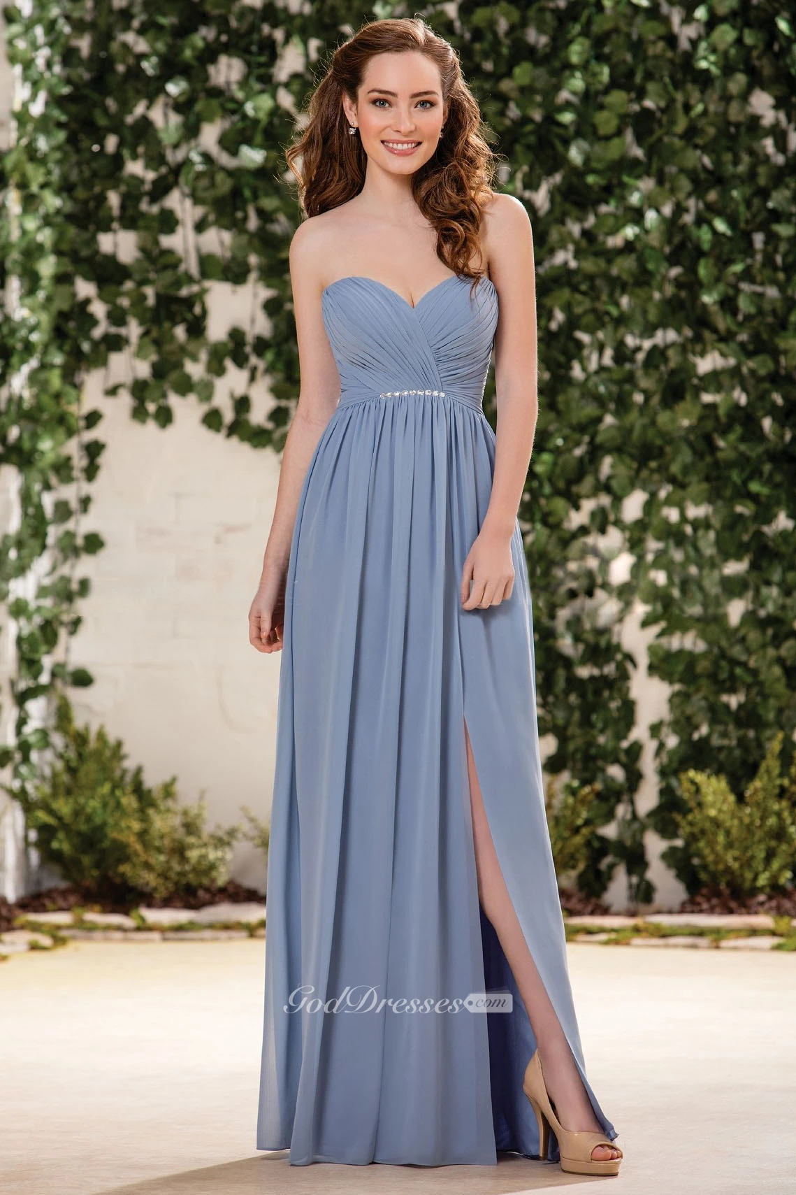 Sweetheart A-Line Chiffon Bridesmaid Dress With Front Slit And Crystals