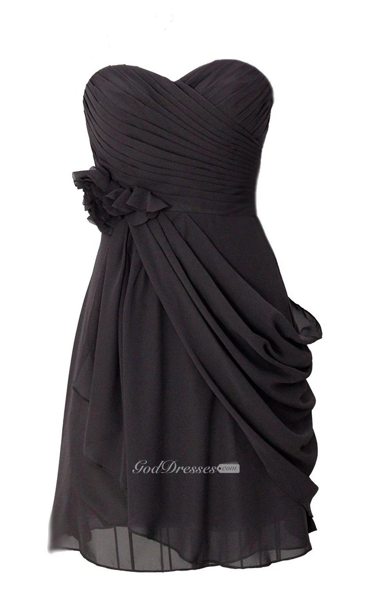 Sweetheart A-line Chiffon Dress With Flower