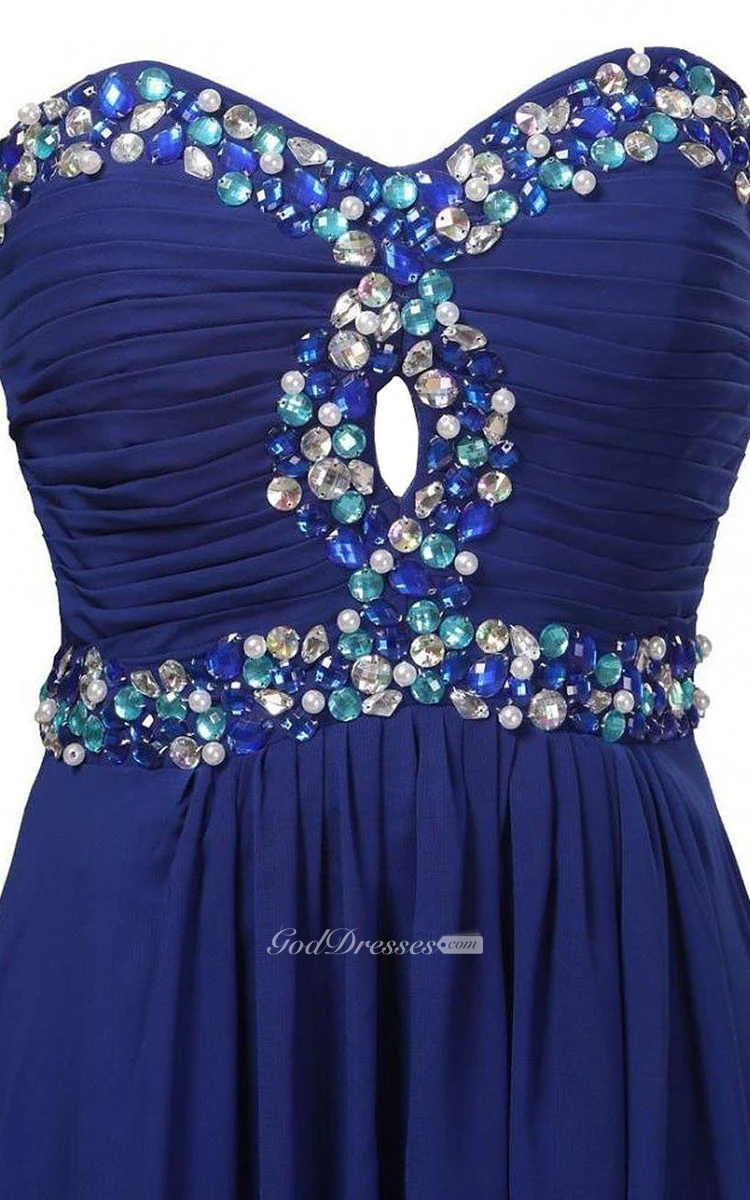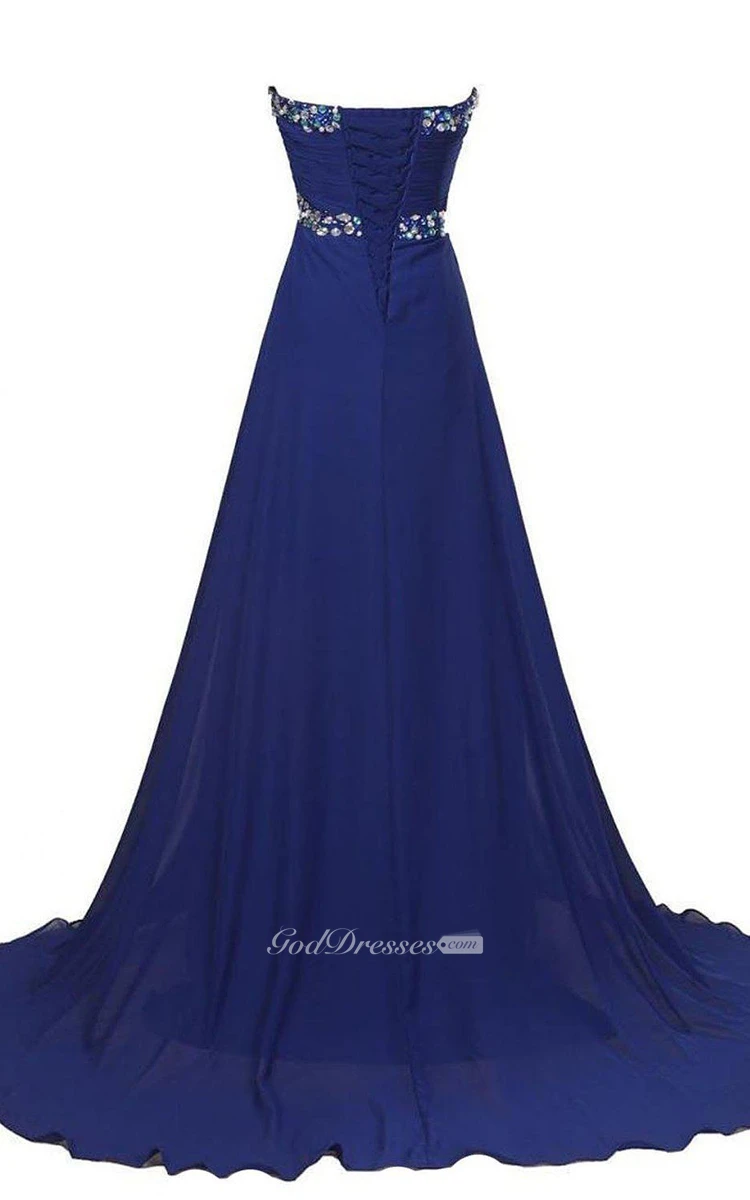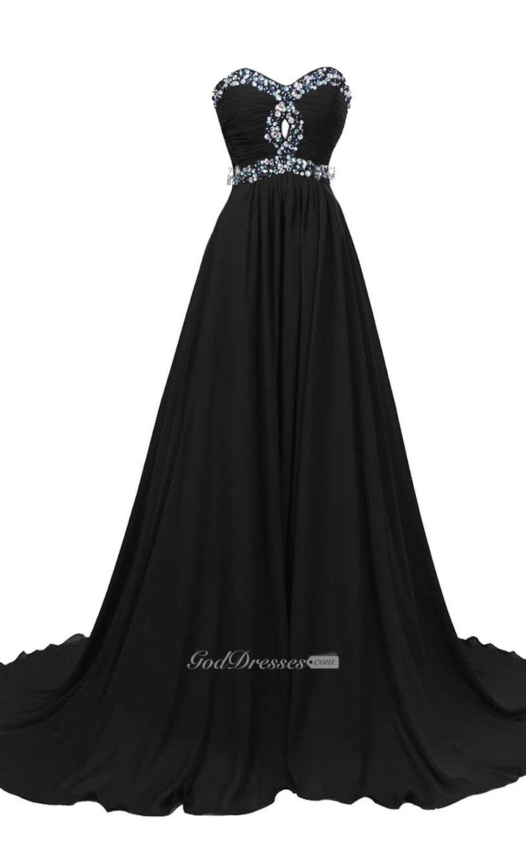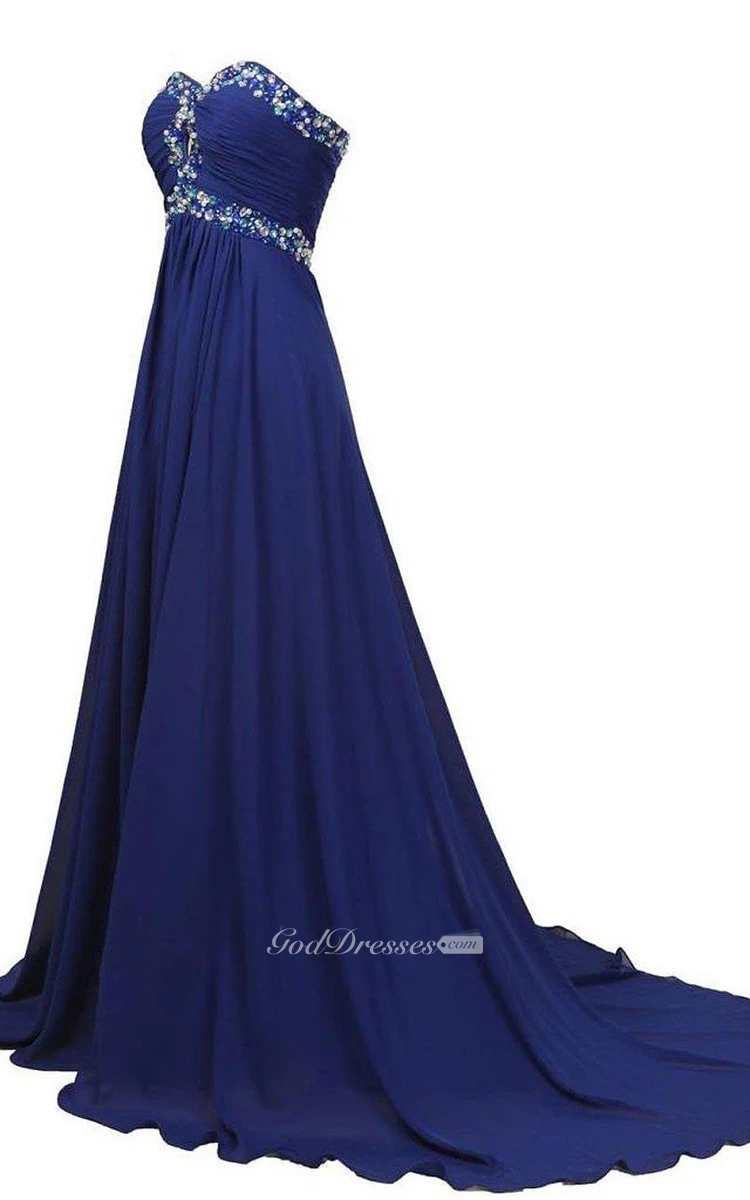 Sweetheart A-line Chiffon Gown With Rhinestones Detail