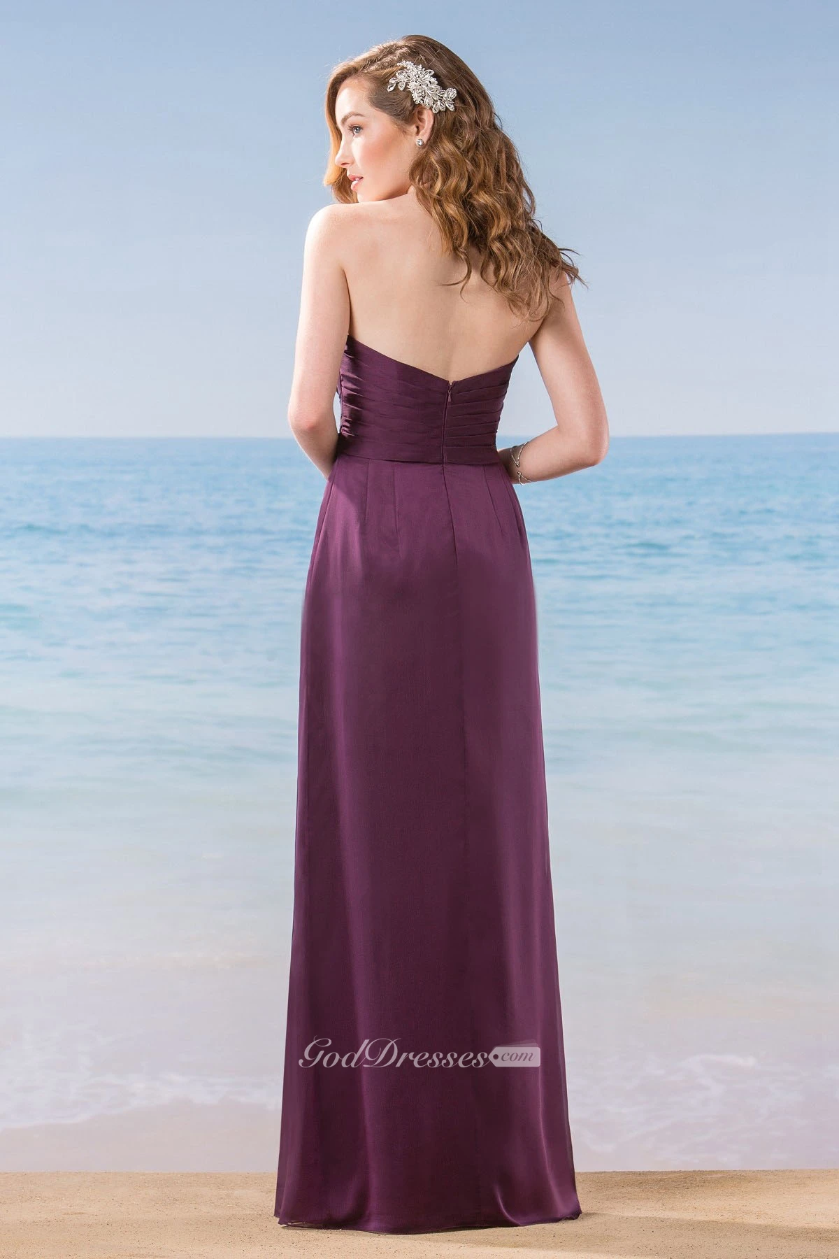 Sweetheart A-Line Floor-Length Bridesmaid Dress With Ruches And Front Slit