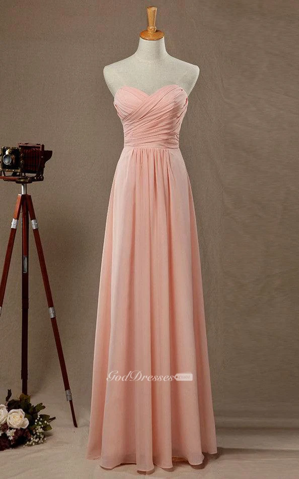 Sweetheart A-line Floor Length Chiffon Dress With Pleats