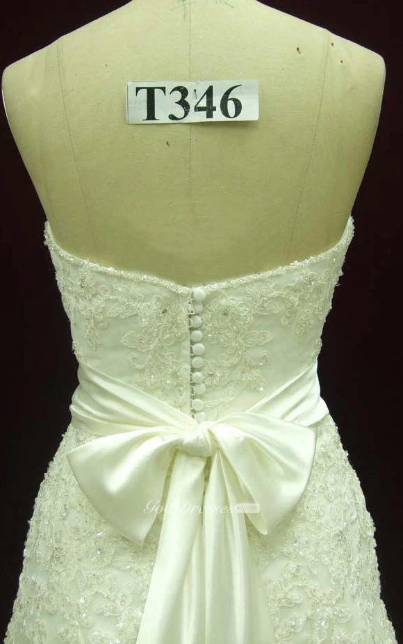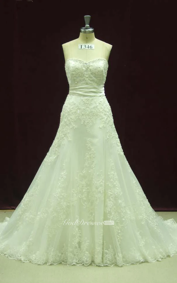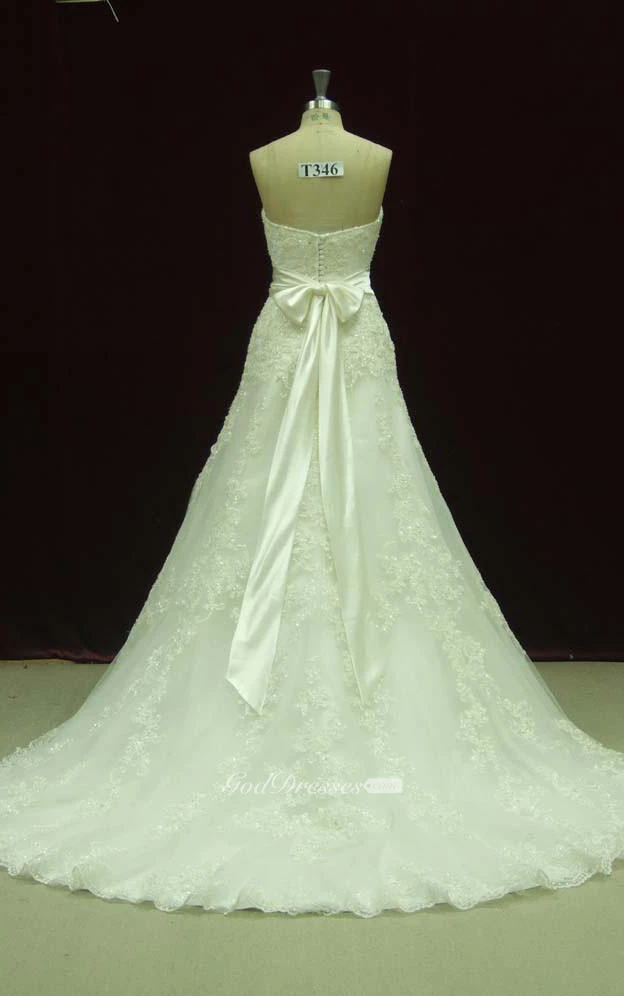 Sweetheart A-Line Lace Bridal Dress With Satin Bow Sash and Beadwork