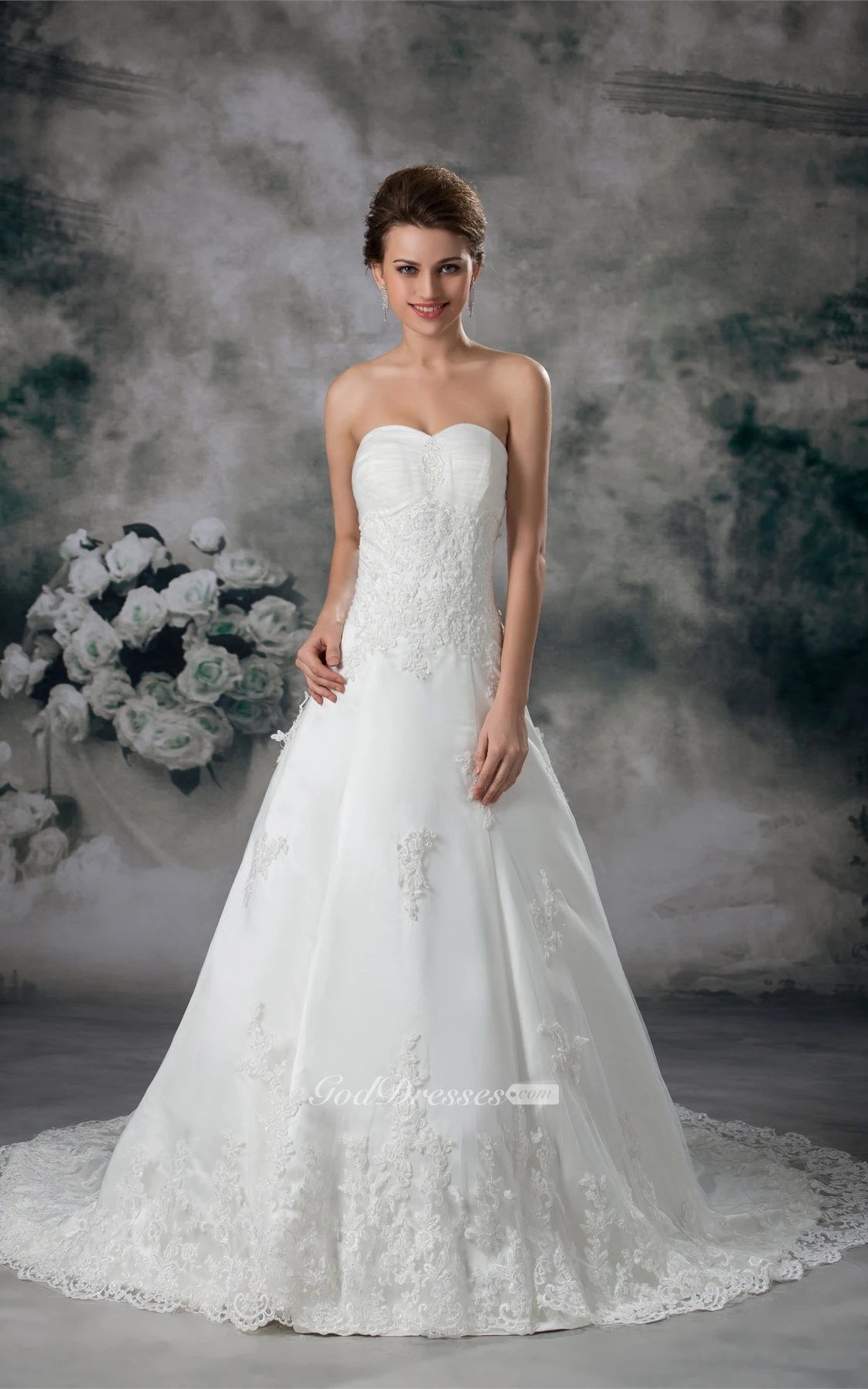 Sweetheart A-Line Lace Sweep Train and Gown With Beading
