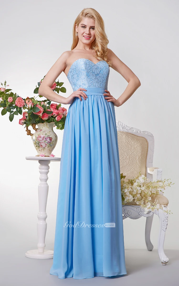 Sweetheart A-line Long Chiffon Dress With Lace Top