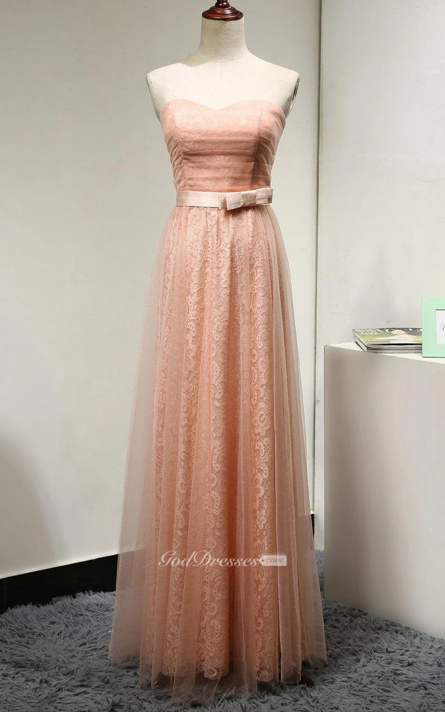 Sweetheart A-line Pleated Tulle Floor Length Dress With Lace and Bow