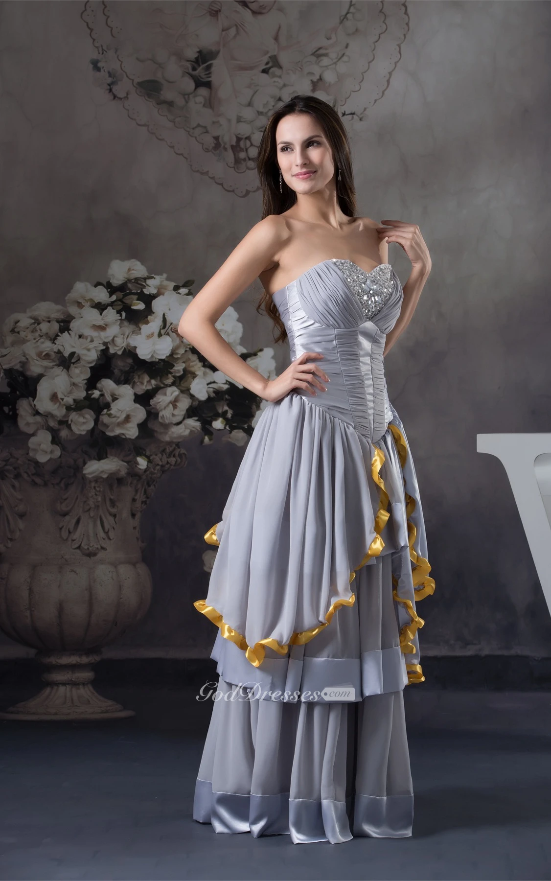 Sweetheart A-Line Ruffled Palatine Skirt and Dress With Beading