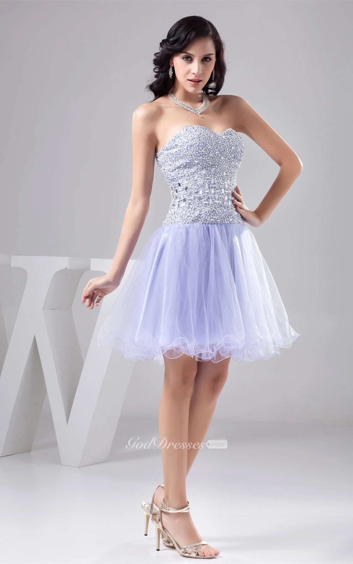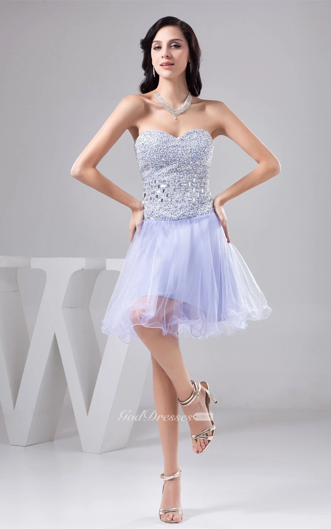 Sweetheart A-Line Short Jeweled Dress With Pleats