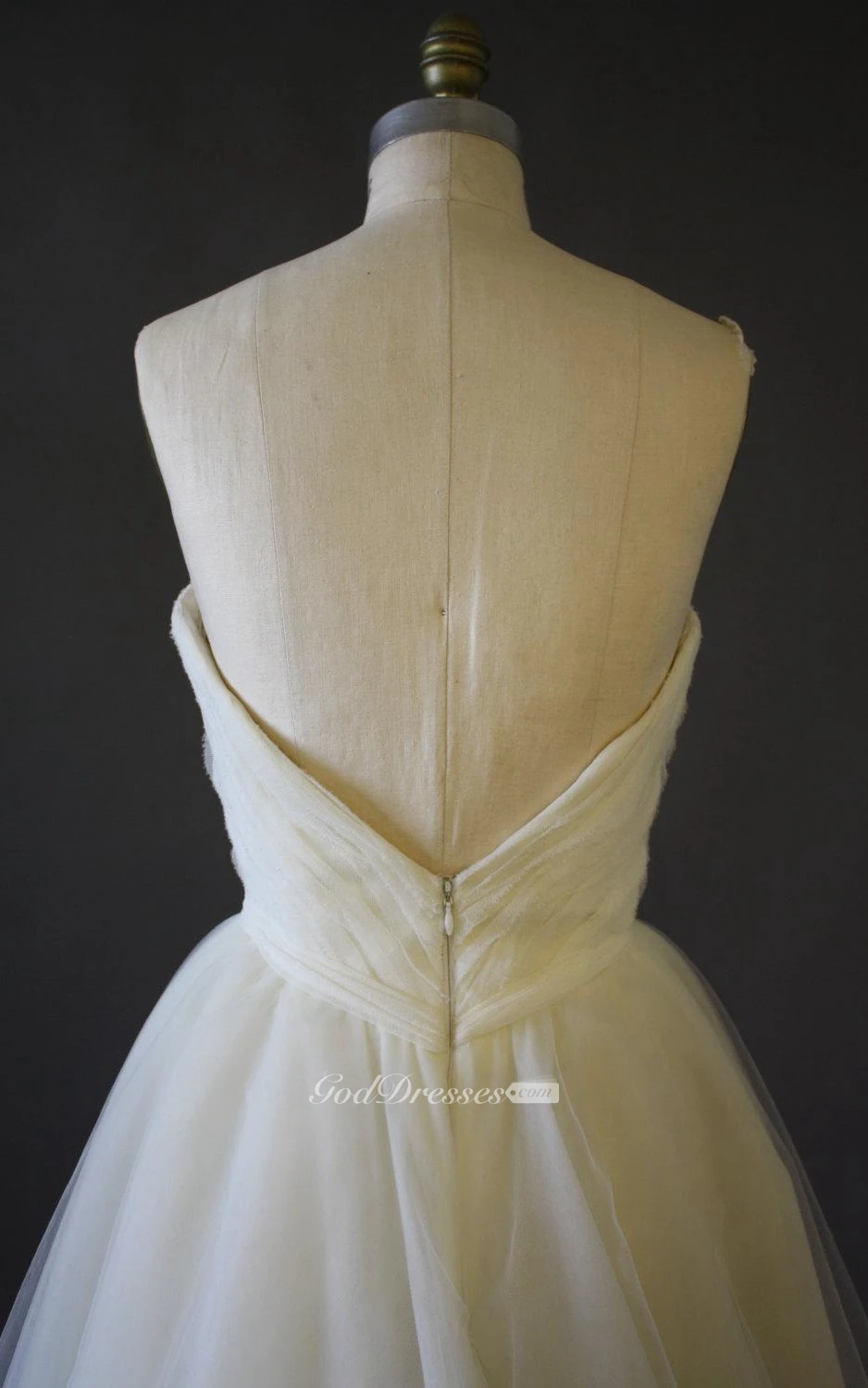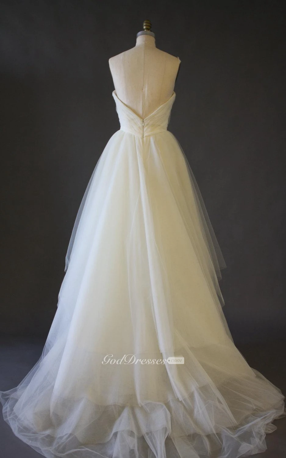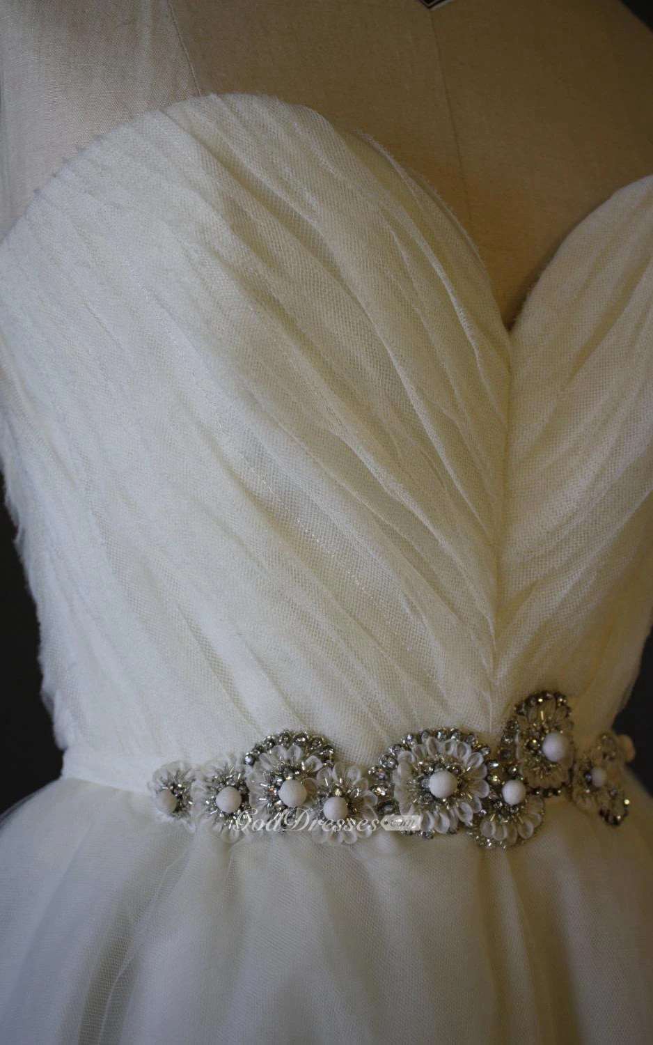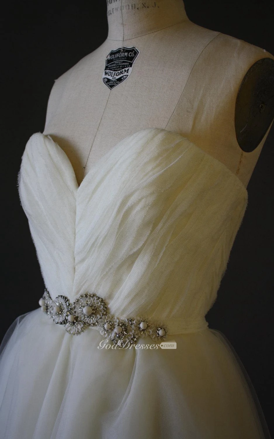 Sweetheart A-Line Tiered Tulle Dress With Beaded Waist and Ruching
