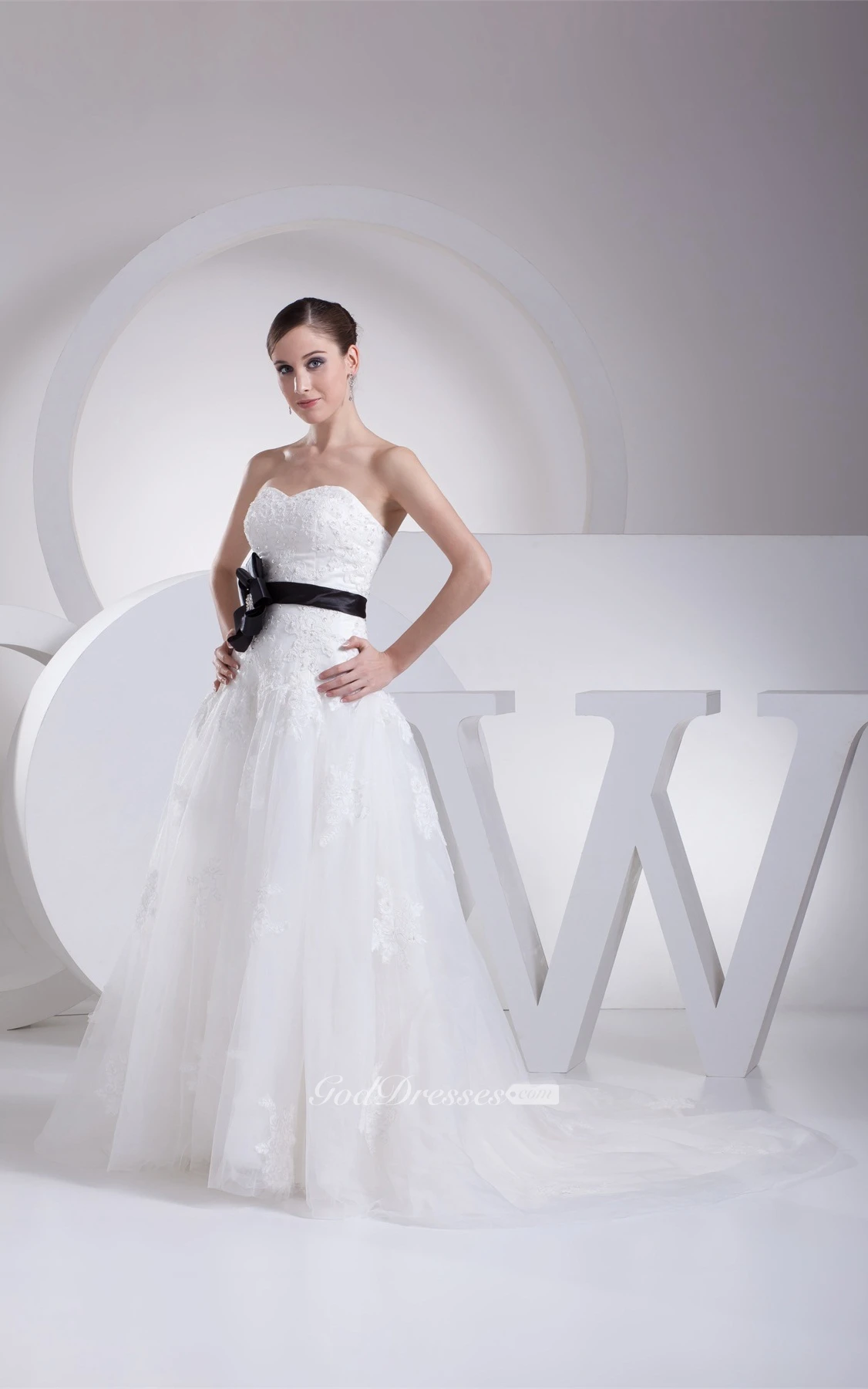 Sweetheart A-Line Tulle Jeweled Bow and Gown With Appliques