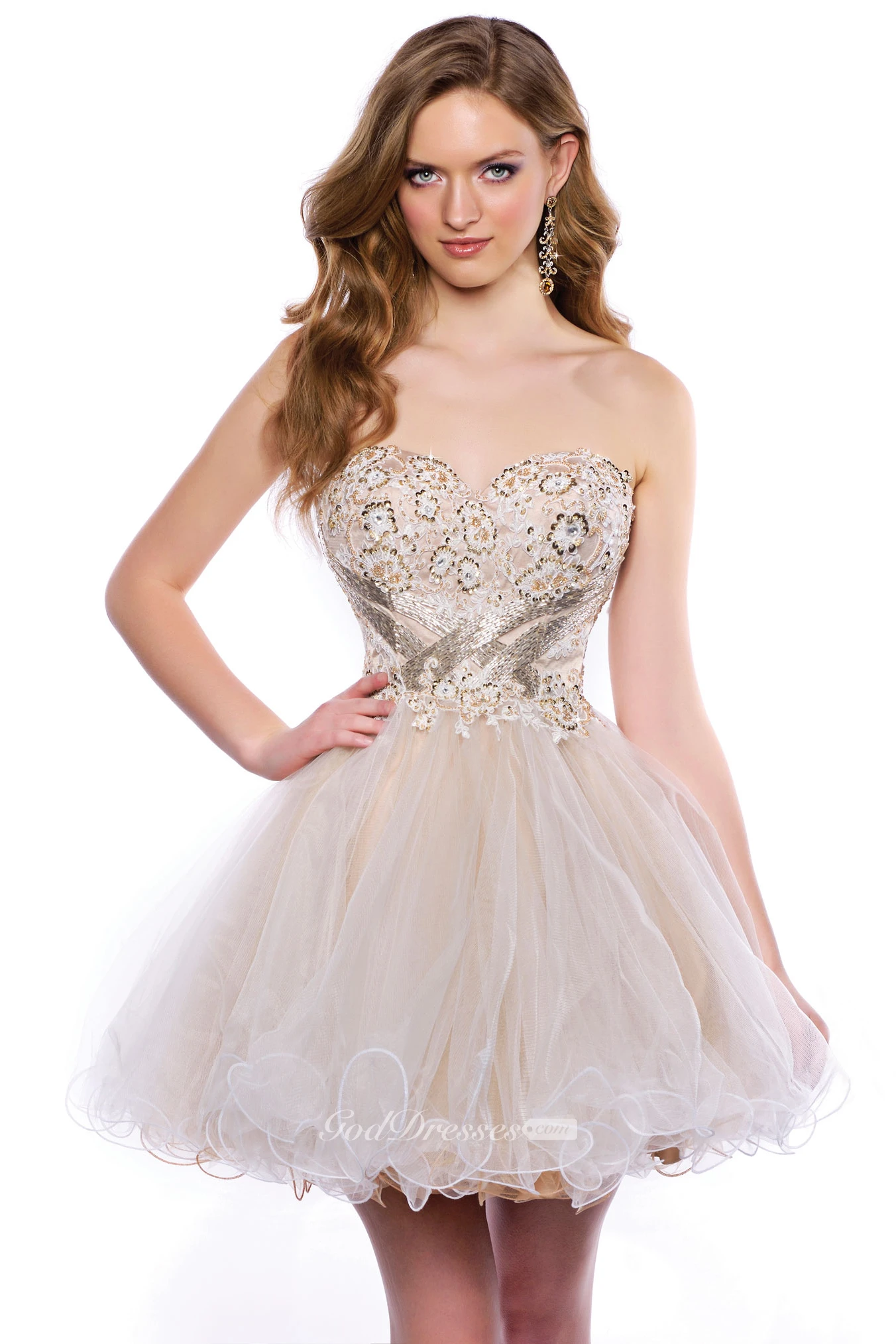 Sweetheart A-Line Tulle Short Homecoming Dress With Sequined Corset