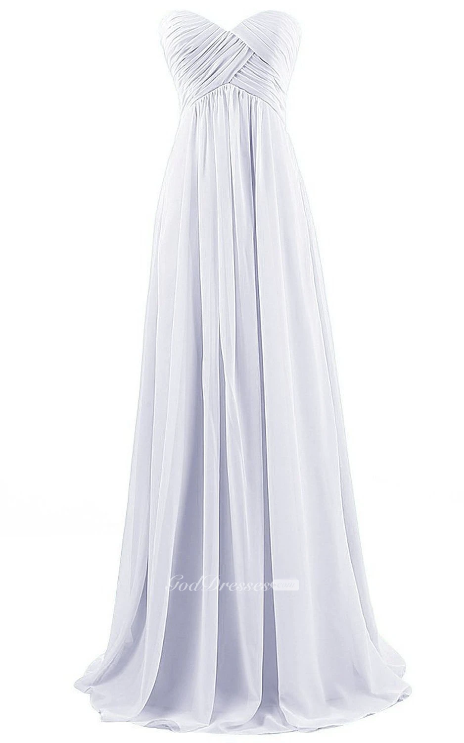 Sweetheart Asymmetrical Ruched Bodice Long Pleated Chiffon Dress