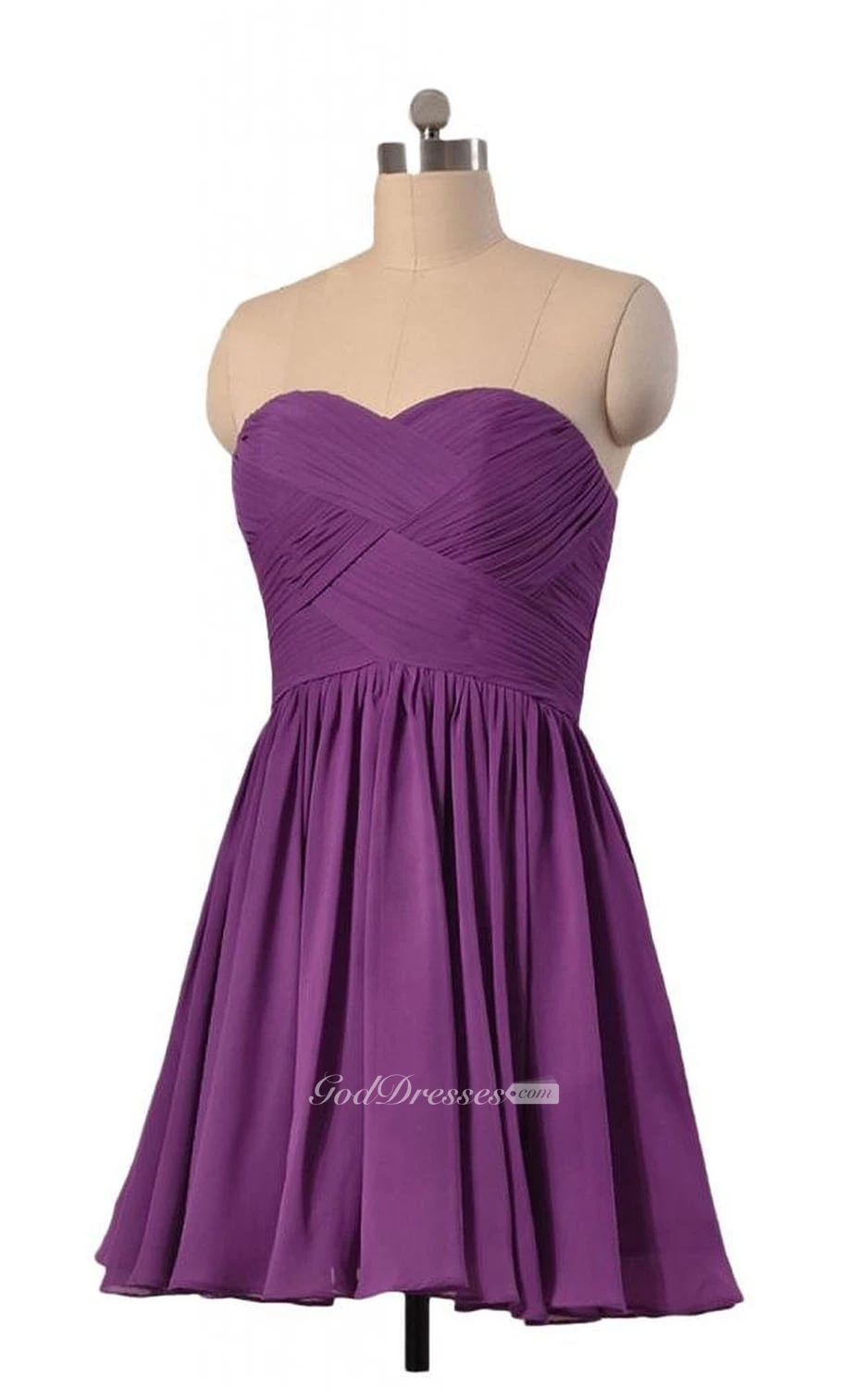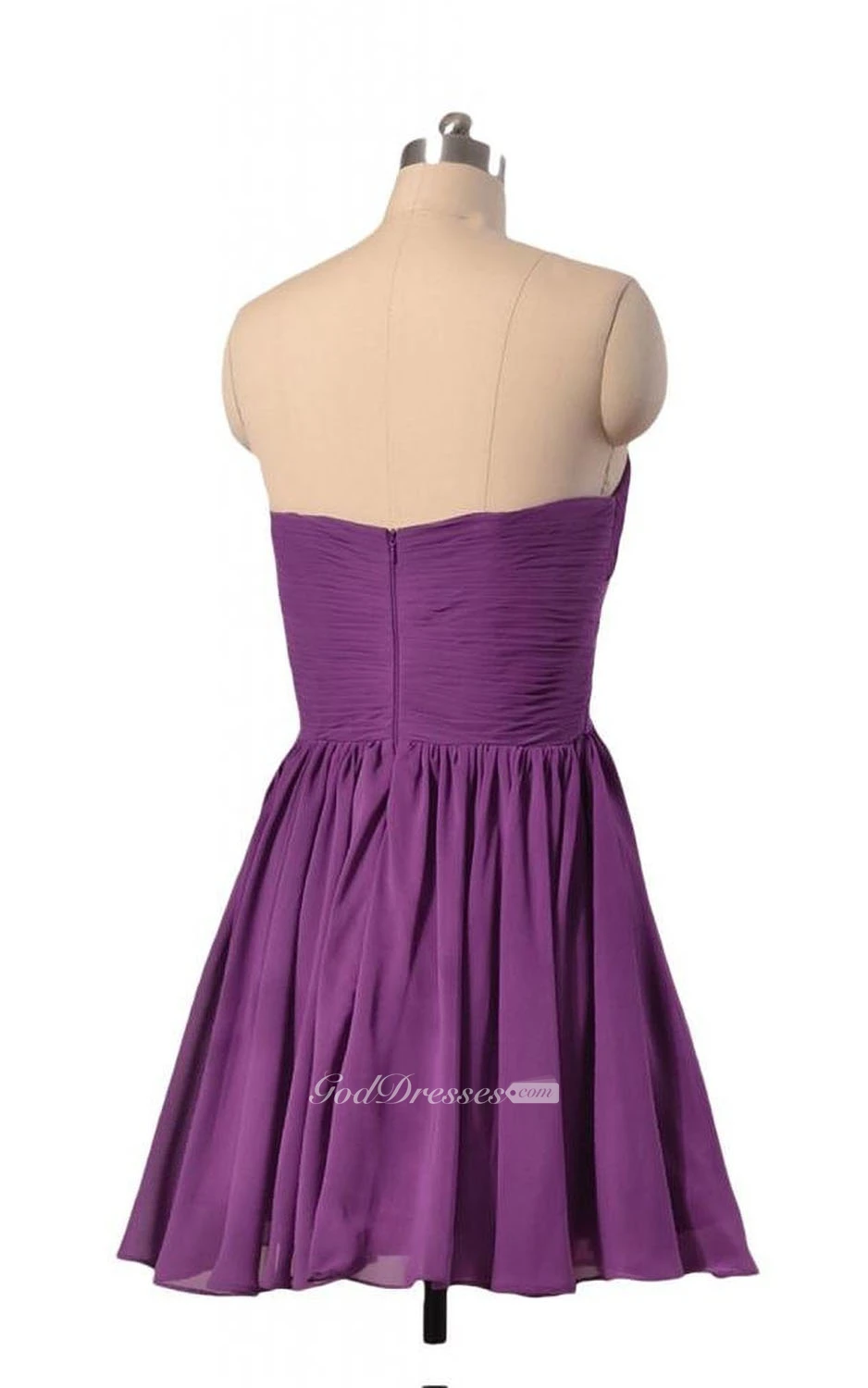 Sweetheart Asymmetrical Ruched Bodice Short Chiffon Dress