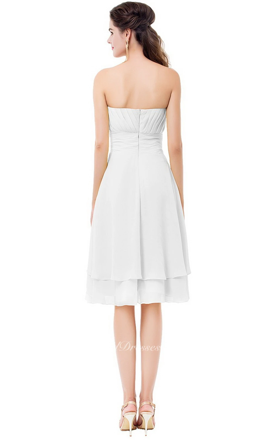 Sweetheart Asymmetrical Ruched Knee-length Layered Chiffon Dress