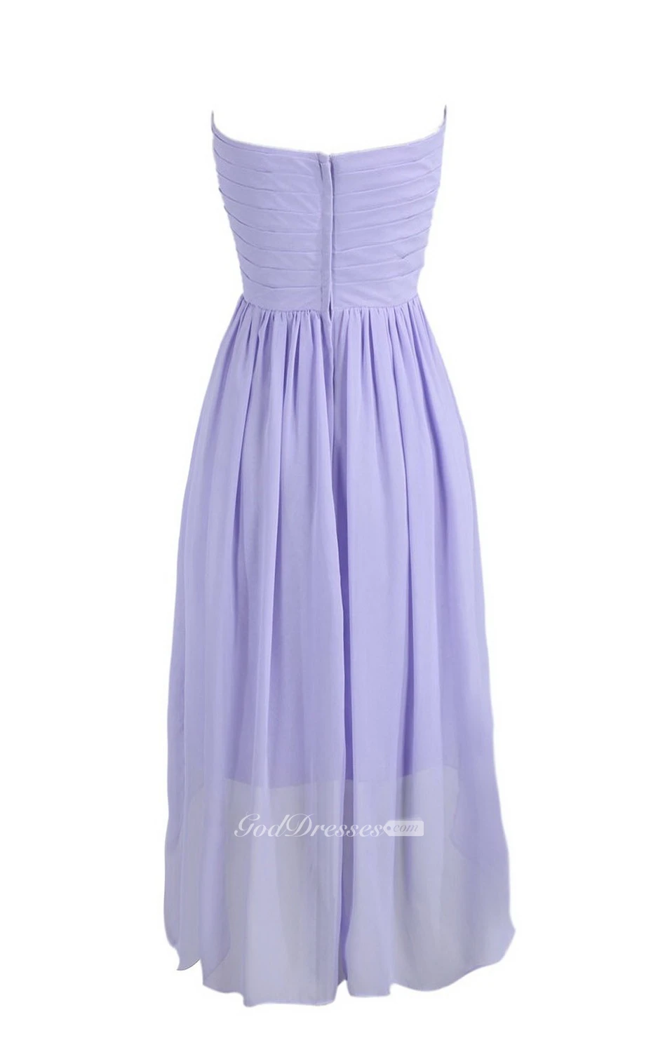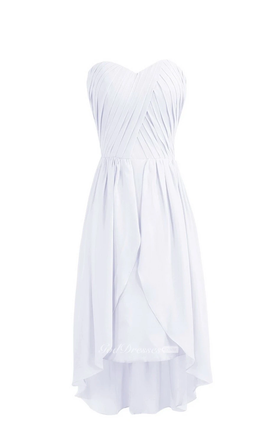 Sweetheart Asymmetrical Ruched Knee-length Layered Chiffon Dress