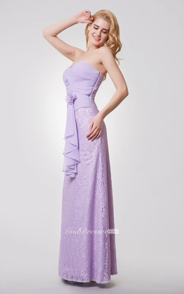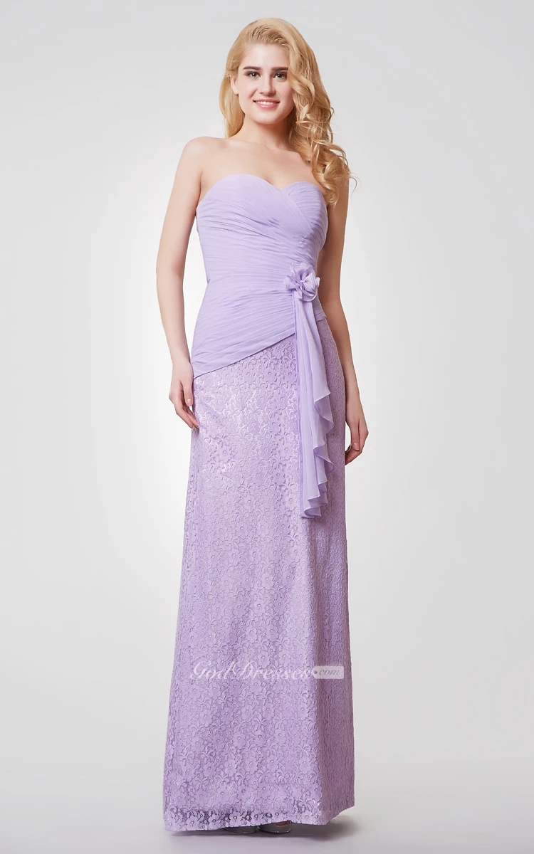 Sweetheart Backless Floral Long Chiffon and Lace Dress