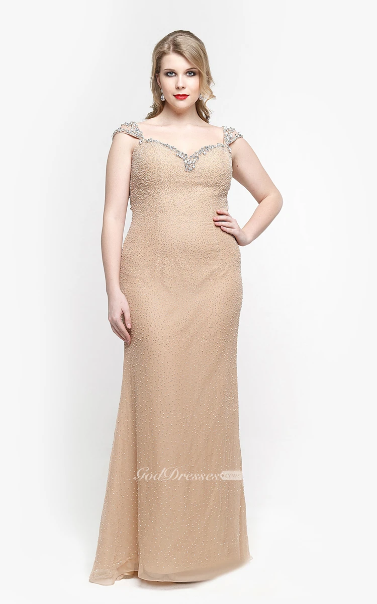 Sweetheart Cap Sleeve Sheath Chiffon Long Dress With Beadings