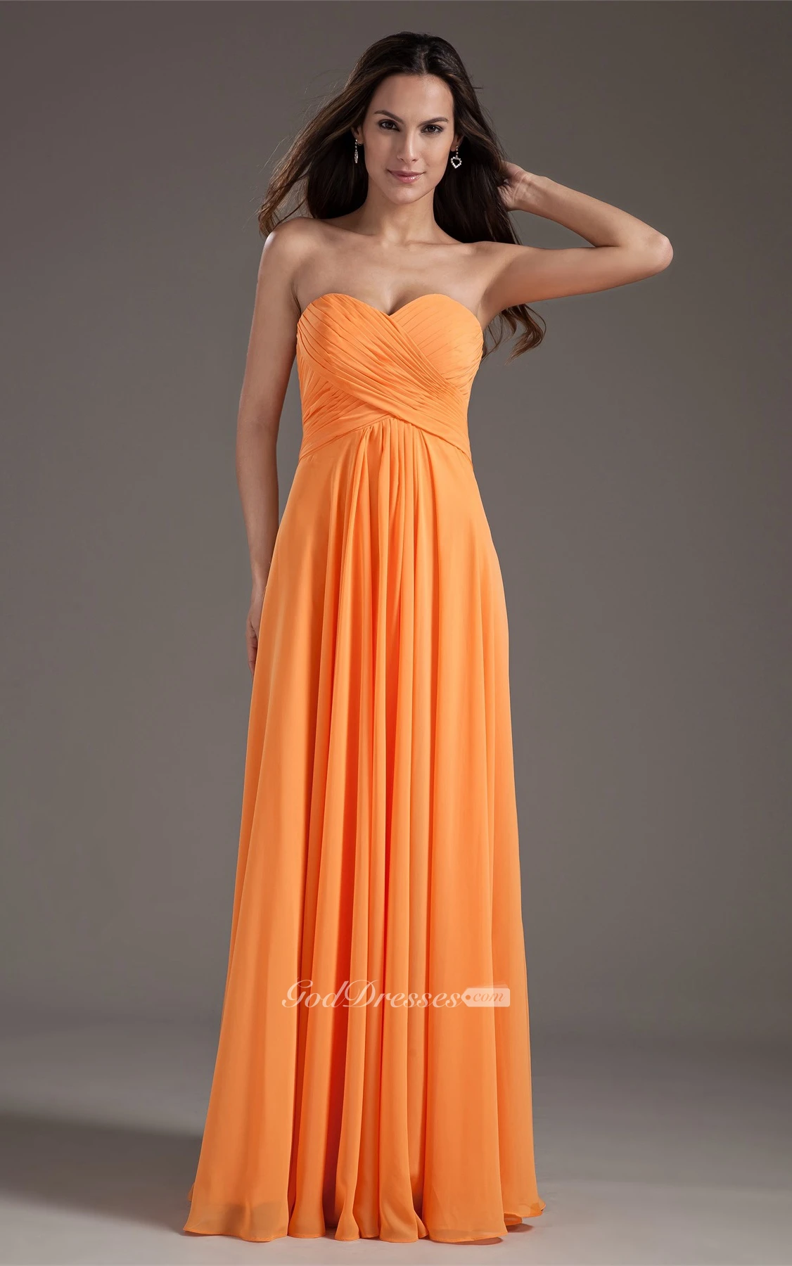 Sweetheart Chiffon Floor-Length Criss-Cross Gown With Pleats
