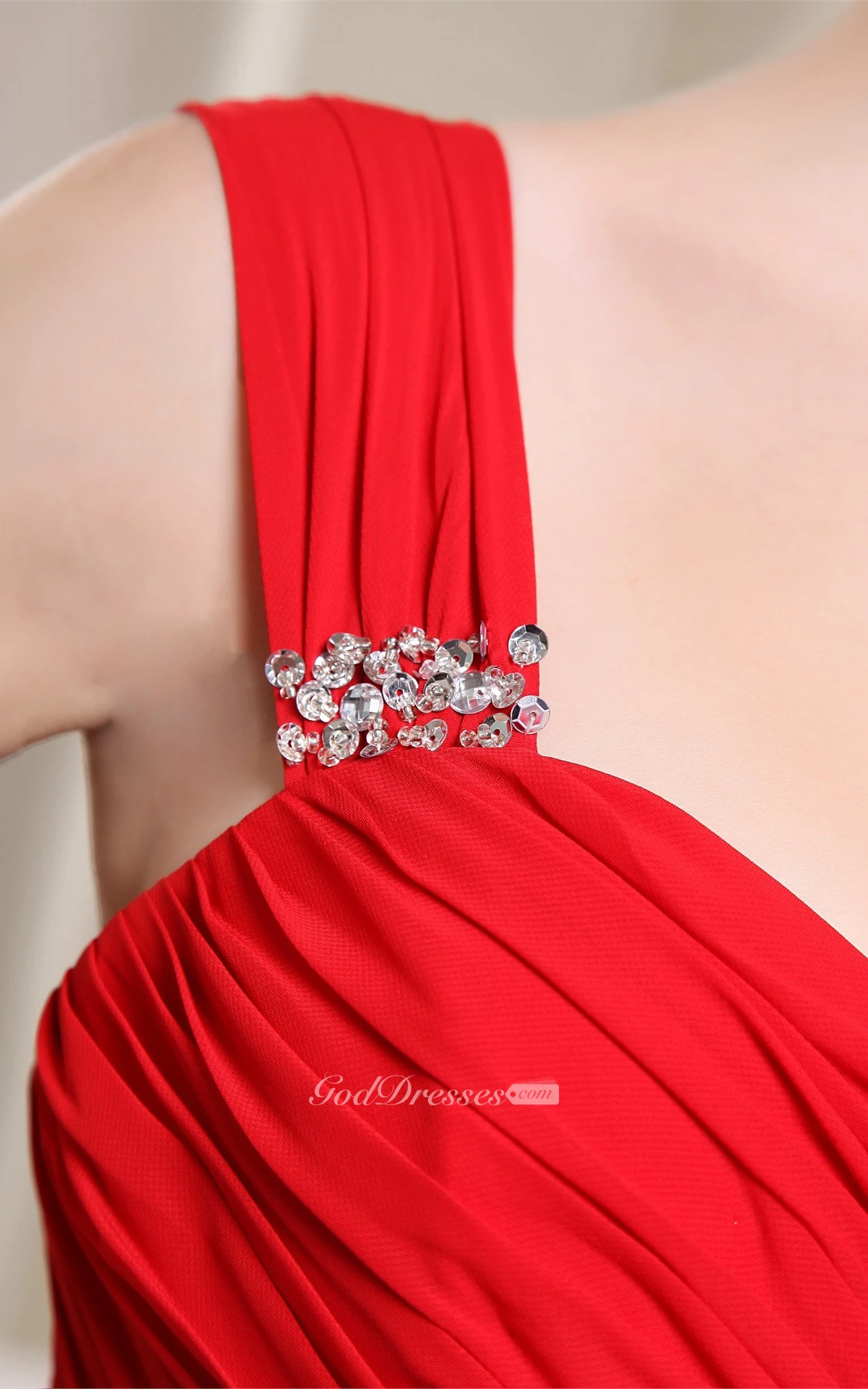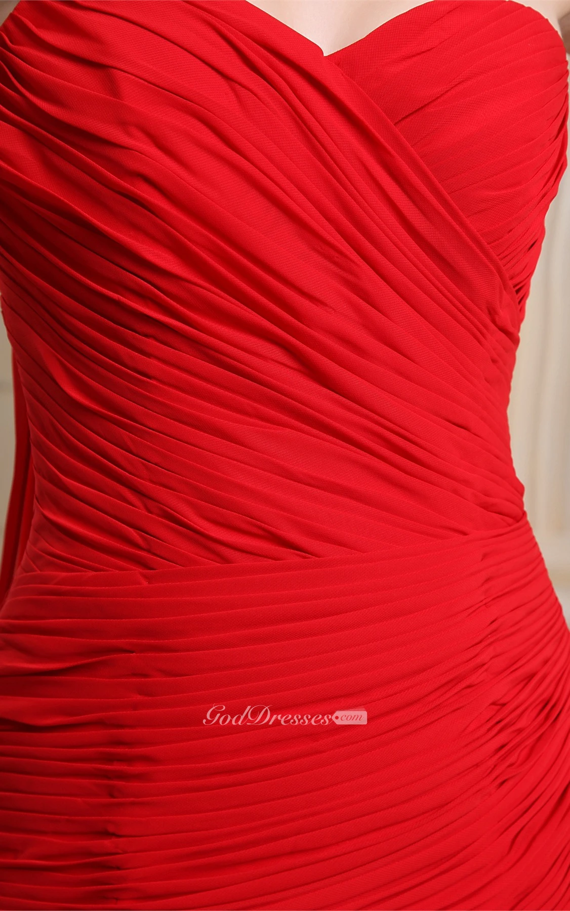 Sweetheart Chiffon Floor-Length Ruched Cascading Ruffles and Dress With Single Strap