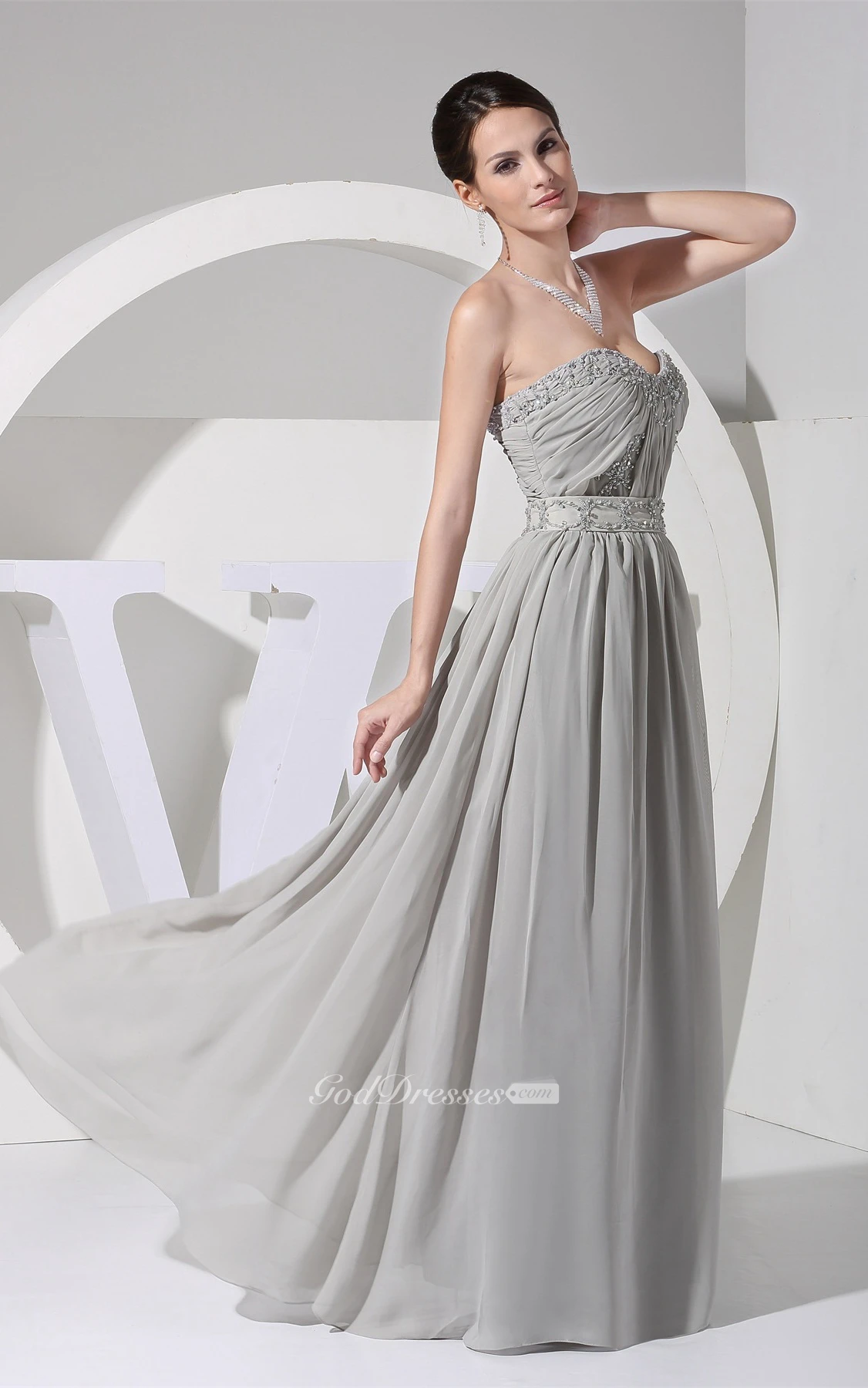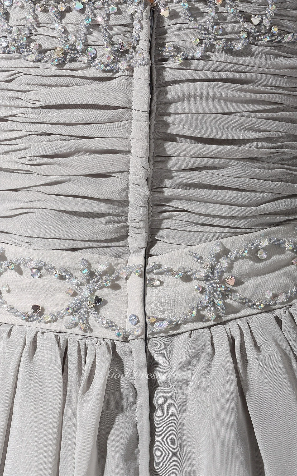 Sweetheart Chiffon Flowered Ruched Dress With Appliques