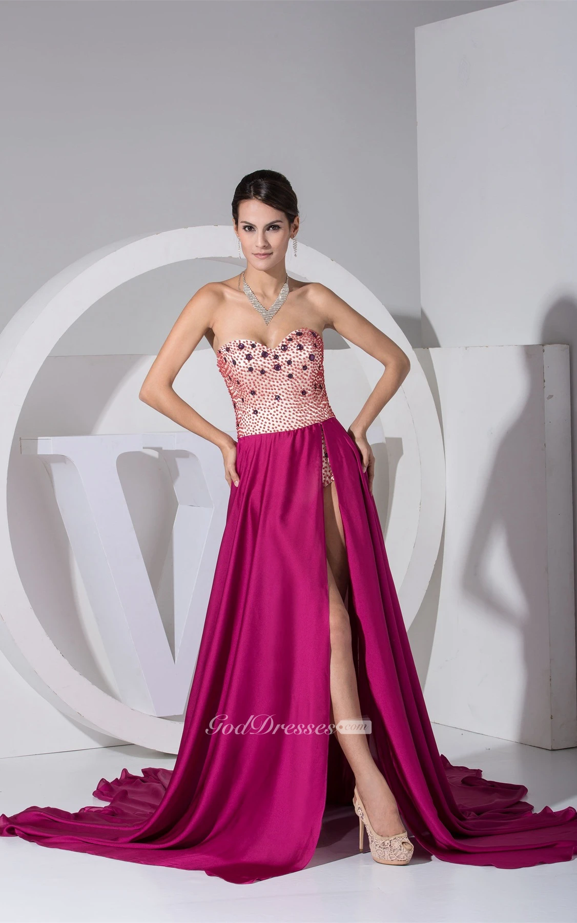 Sweetheart Chiffon Front-Split Pleats and Dress With Rhinestone