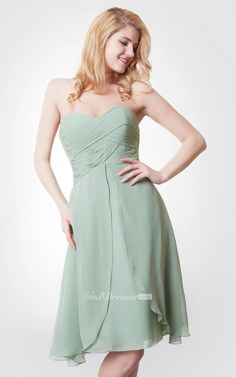 Sweetheart Criss Crossed Knee Length Chiffon Dress With Tiers