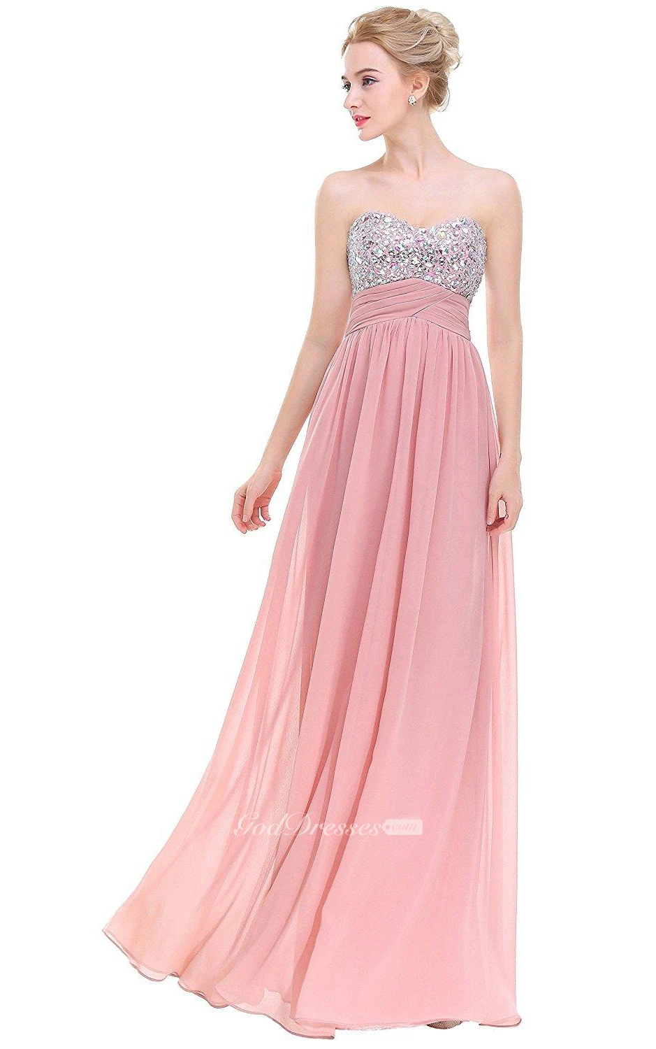 Sweetheart Empire Chiffon Dress with Ruches and Sequins