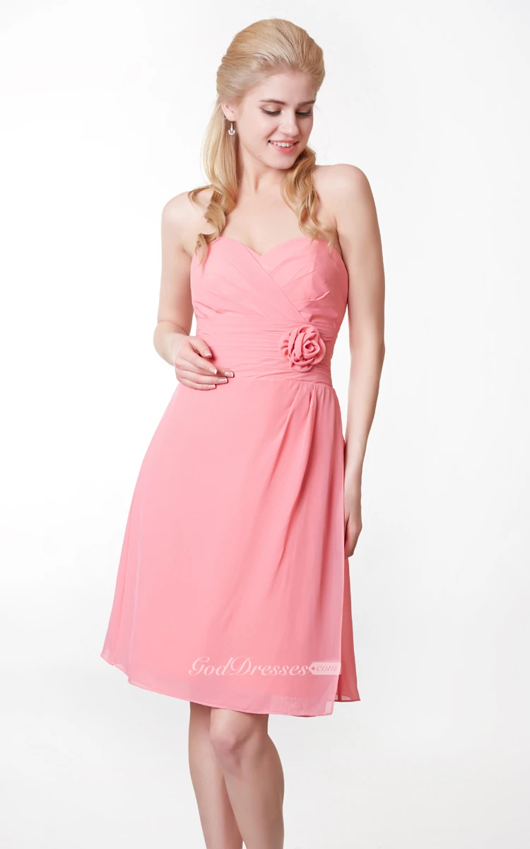 Sweetheart Empire Chiffon Short Dress With Flower