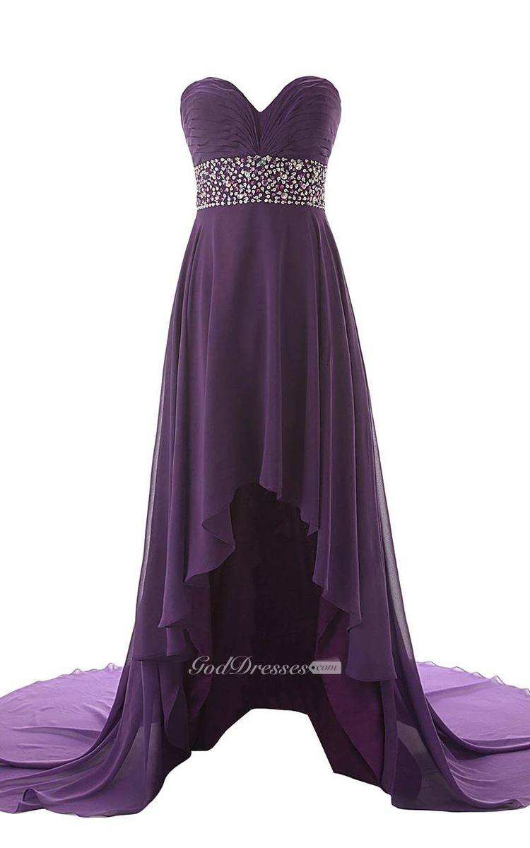 Sweetheart Empire High-low Chiffon Dress With Sequins