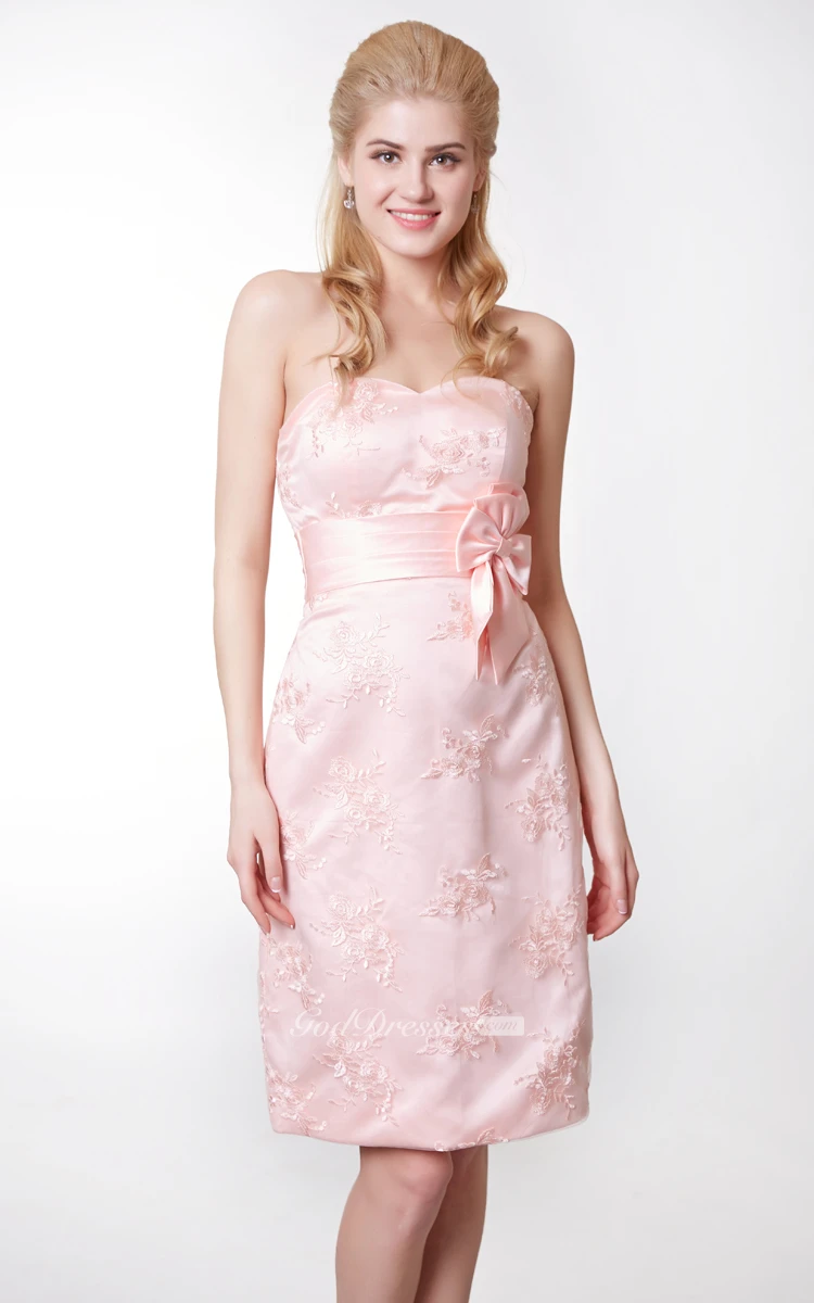 Sweetheart Empire Lace Sheath Short Dress With Bow