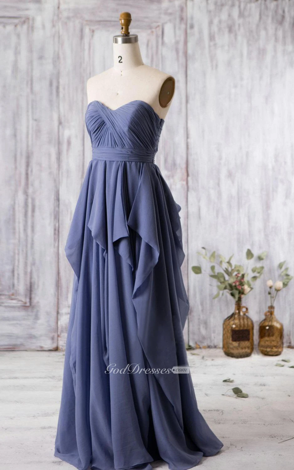 Sweetheart Empire Pleated A-line Chiffon Long Dress With Ruffles and Keyhole