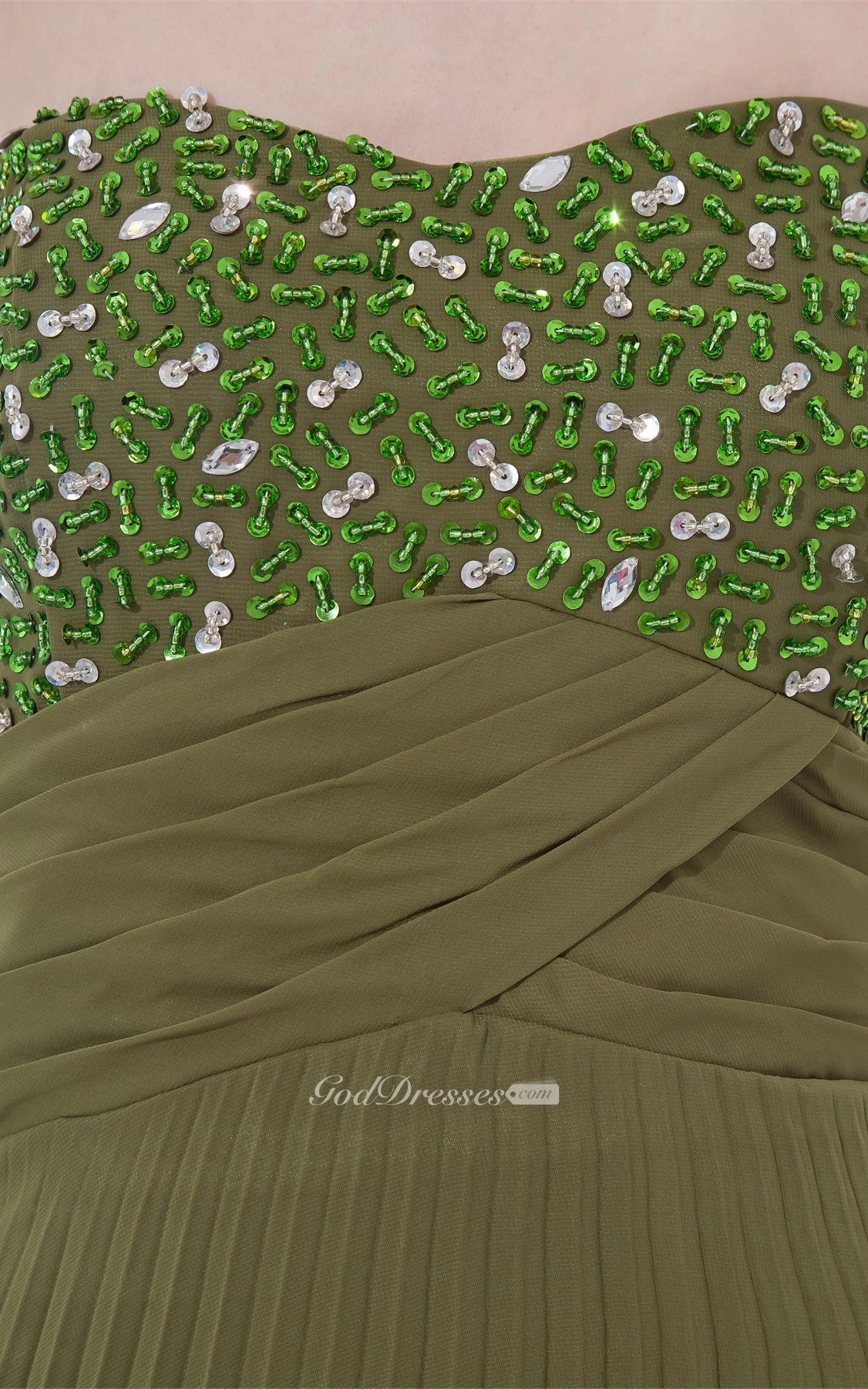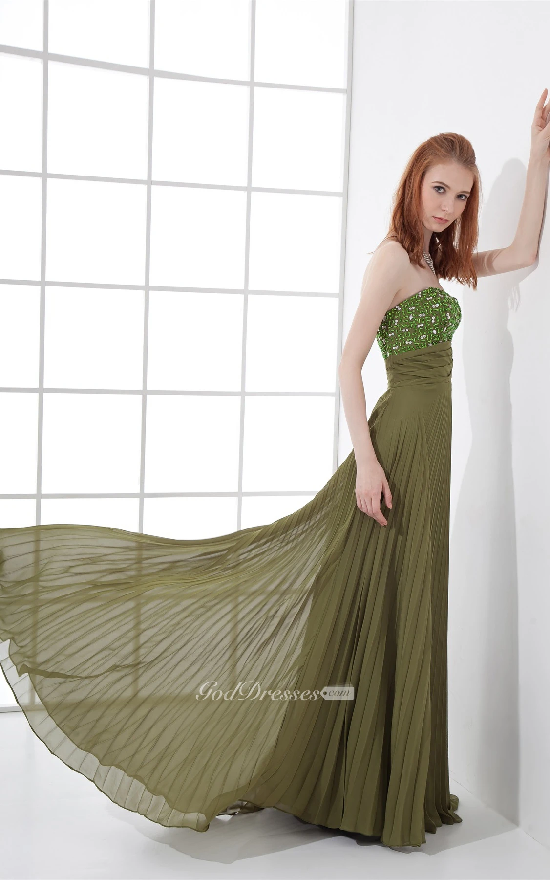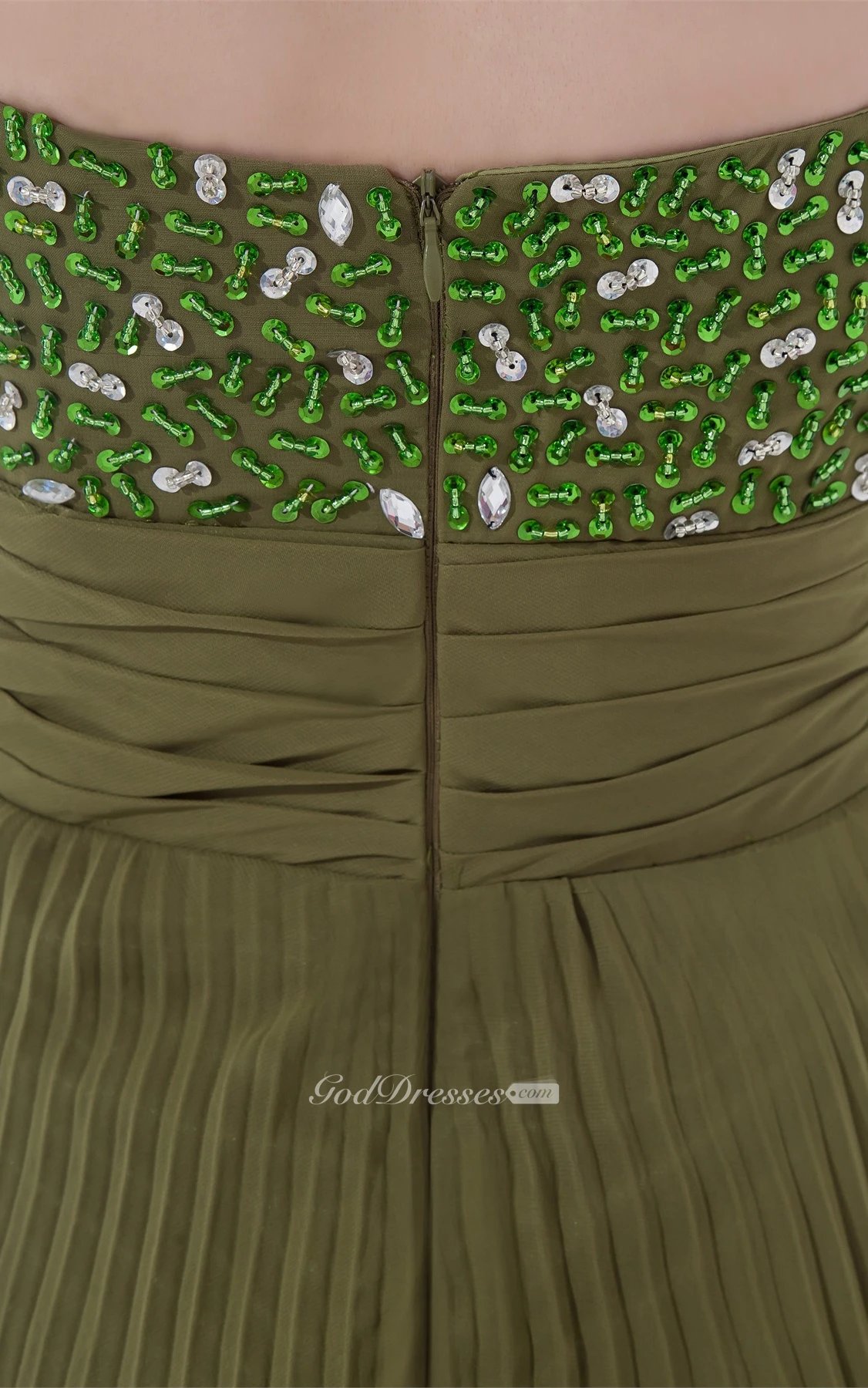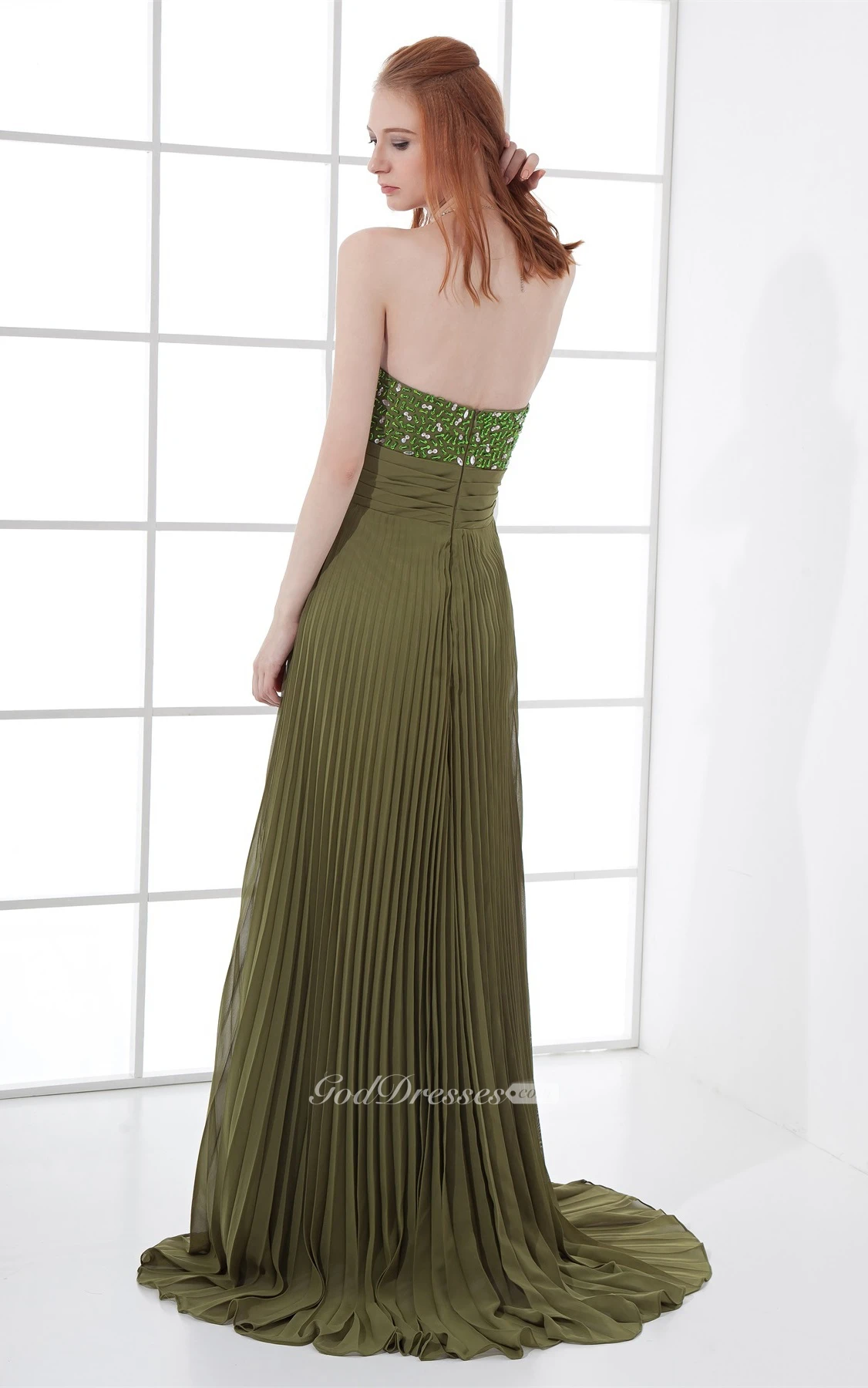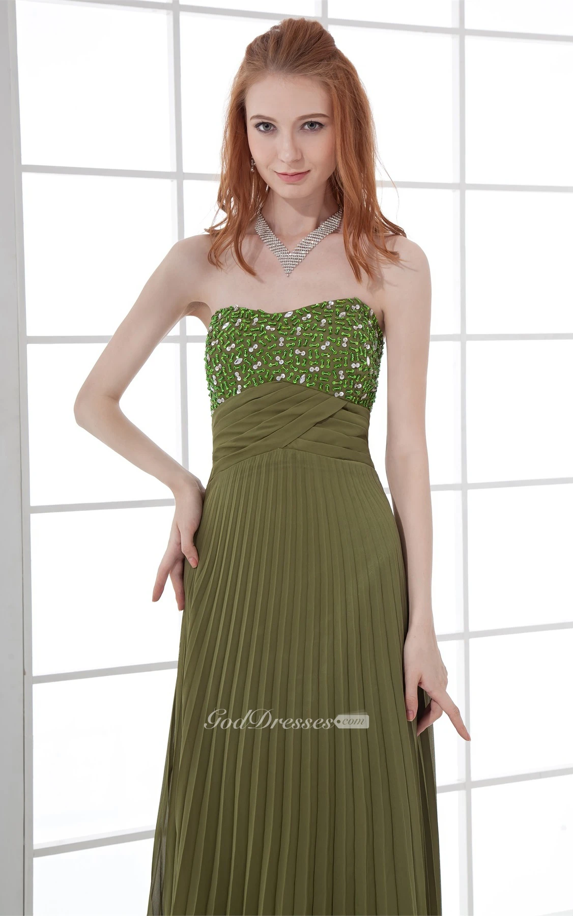 Sweetheart Floor-Length Pleated Dress With Gemmed Top
