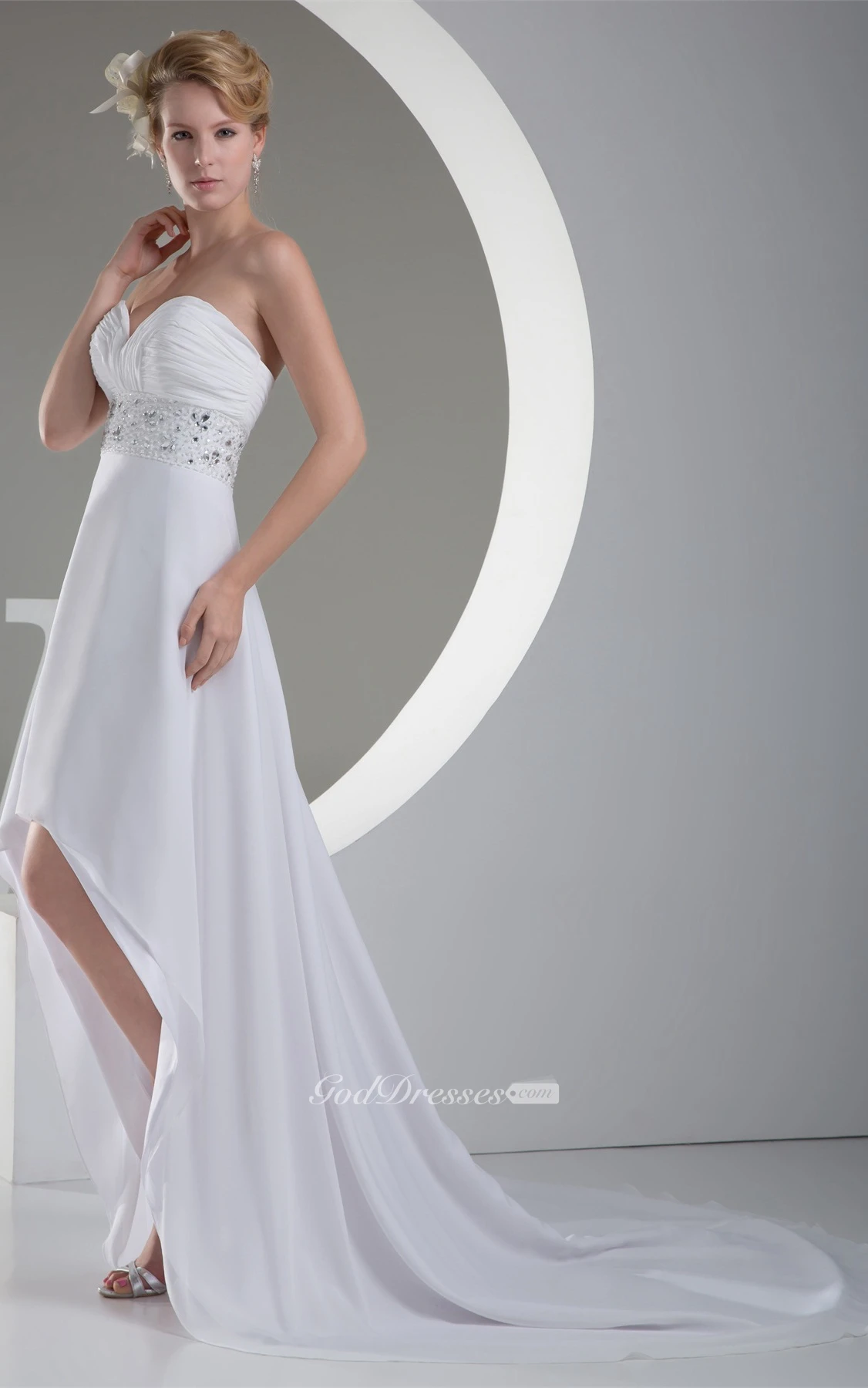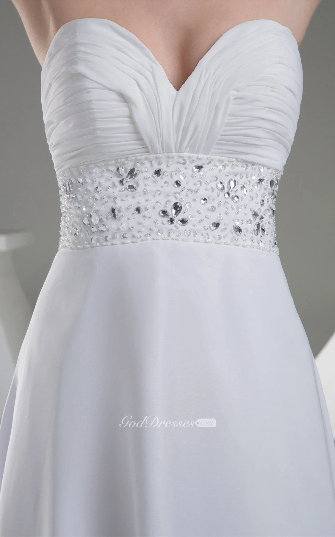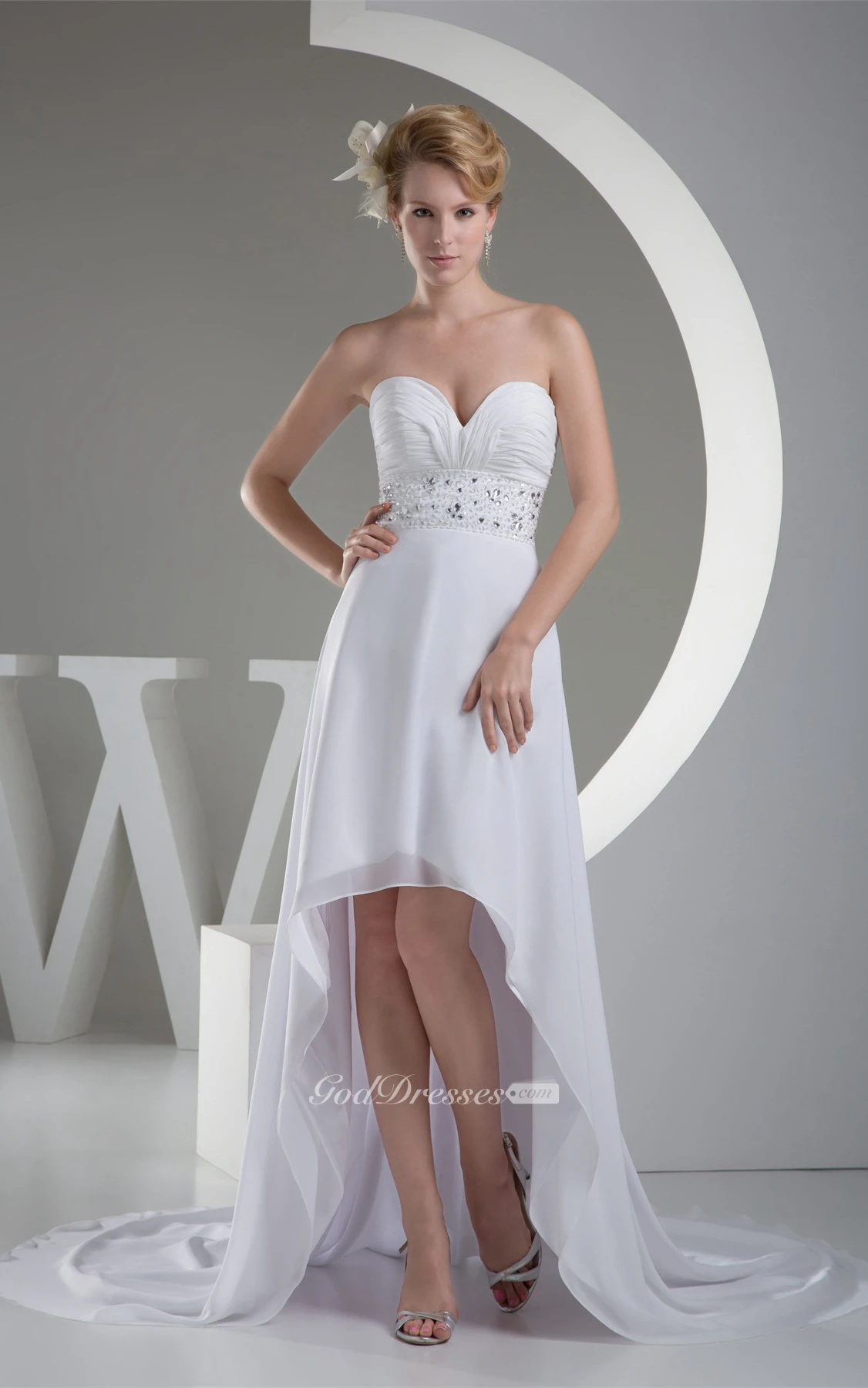 Sweetheart High Low A-Line Ruched Dress With Jeweled Sash
