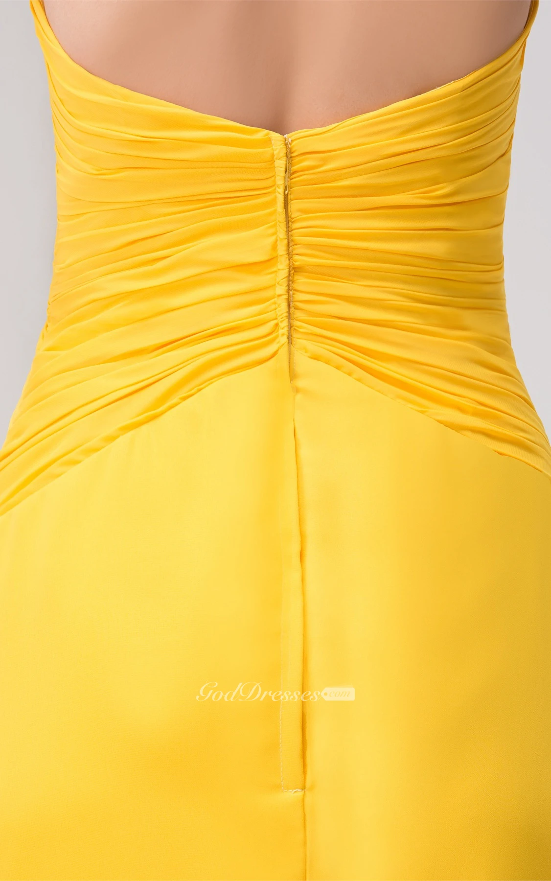 Sweetheart High-Low Chiffon Criss-Cross Draping and Dress With Broach