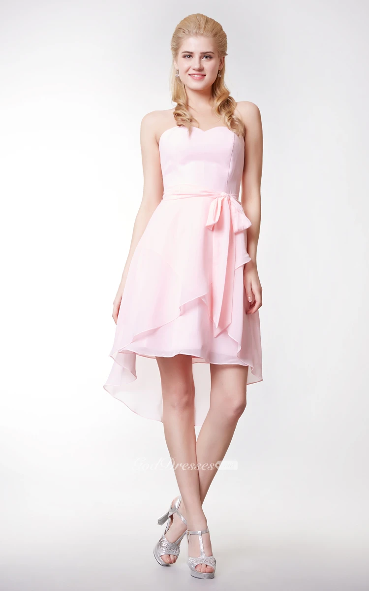 Sweetheart High Low Chiffon Short Dress With Crisscross Skirt