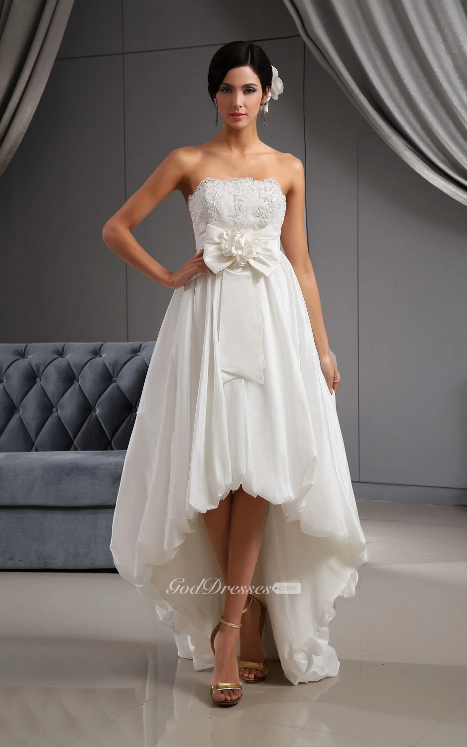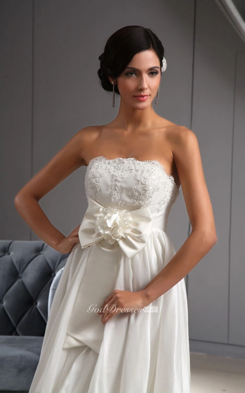 Sweetheart High-low Lace Bodice Wedding Dress With 3D Flower
