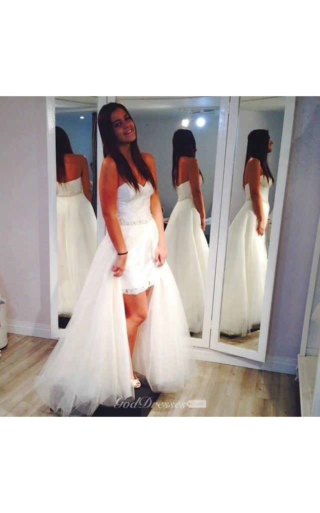 Sweetheart High Low Tulle Floor Length Dress With Beadings