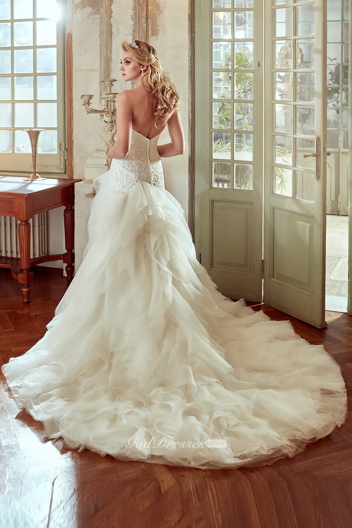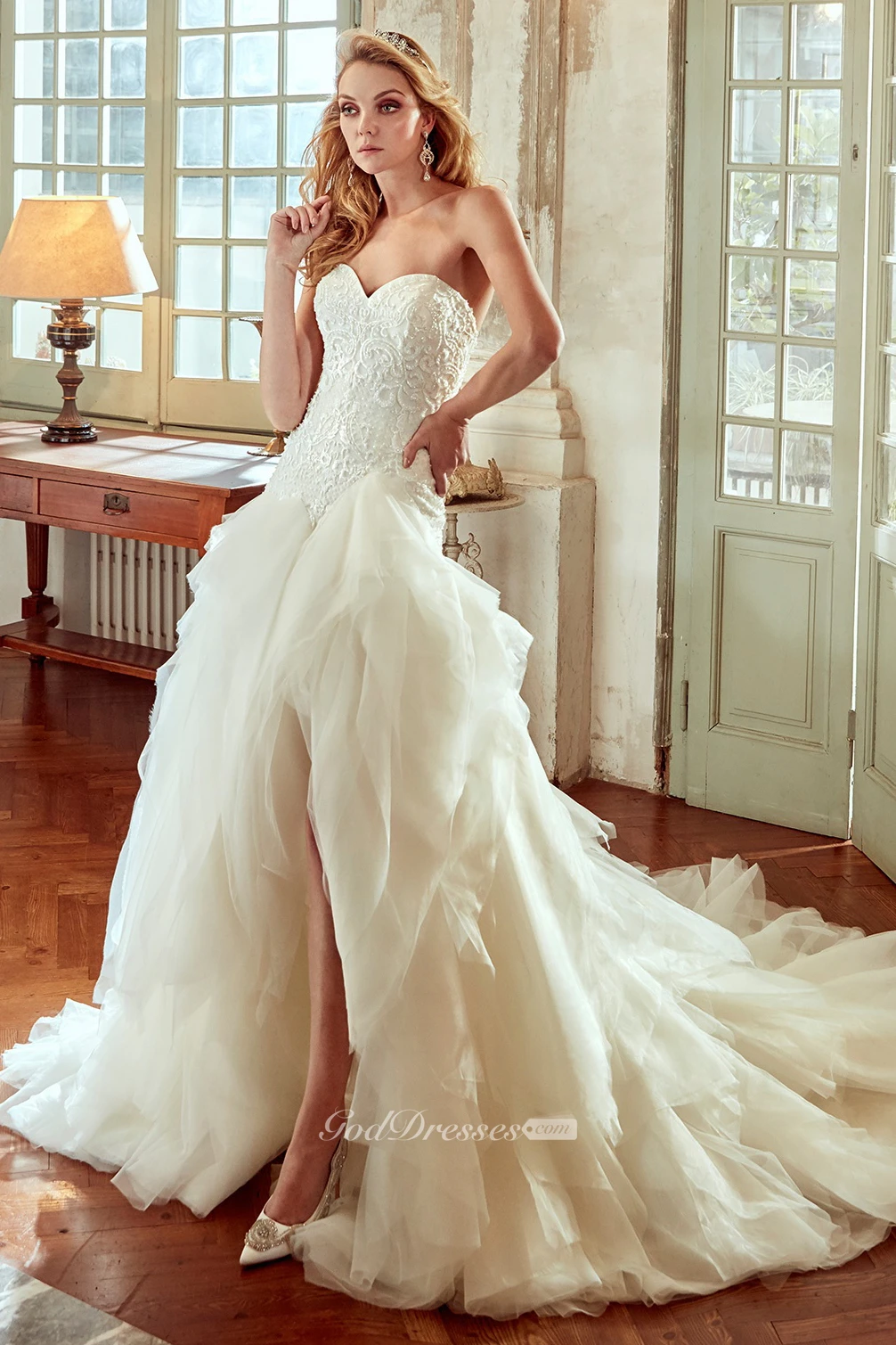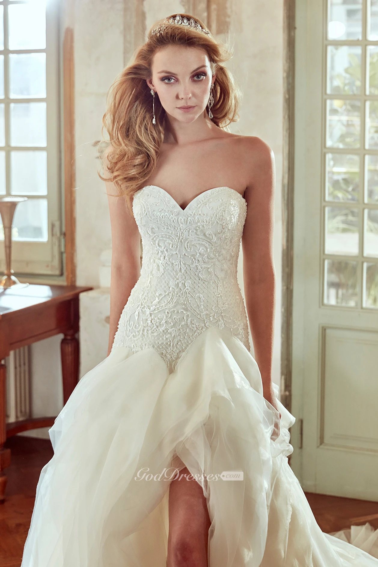 Sweetheart High-Low Wedding Dress with Ruching Skirt and Lace Corset