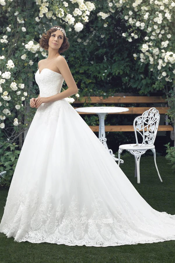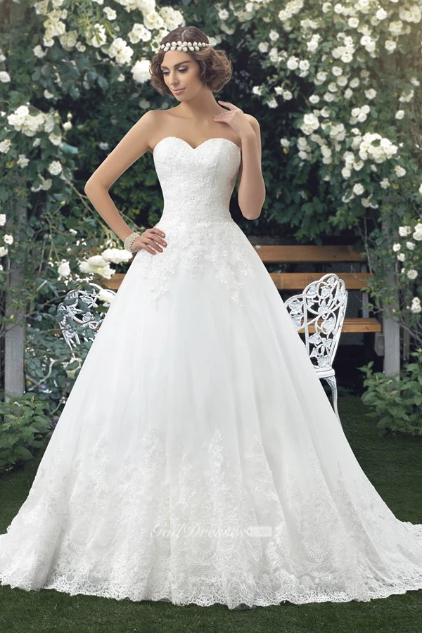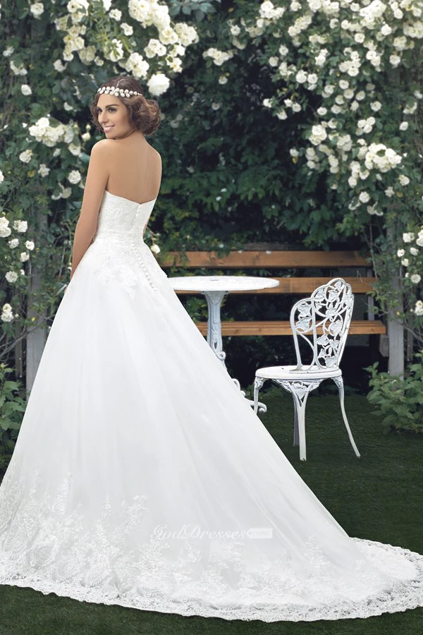Sweetheart Lace Appliqued Sleeveless Ball Gown Bridal Dress With Buttons