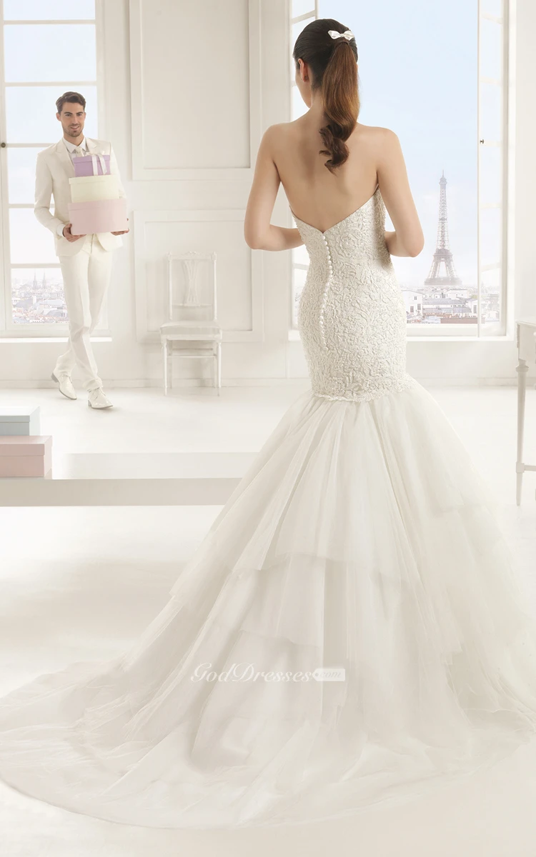 Sweetheart Lace Bodice Lavish Dress With Tiers